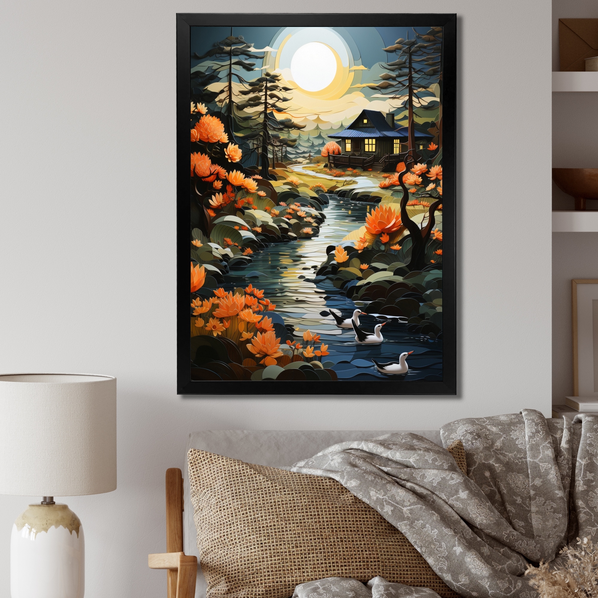Designart "Farmhouse Frontyard Tranquility Papercut" Farm Framed Canvas Wall Art