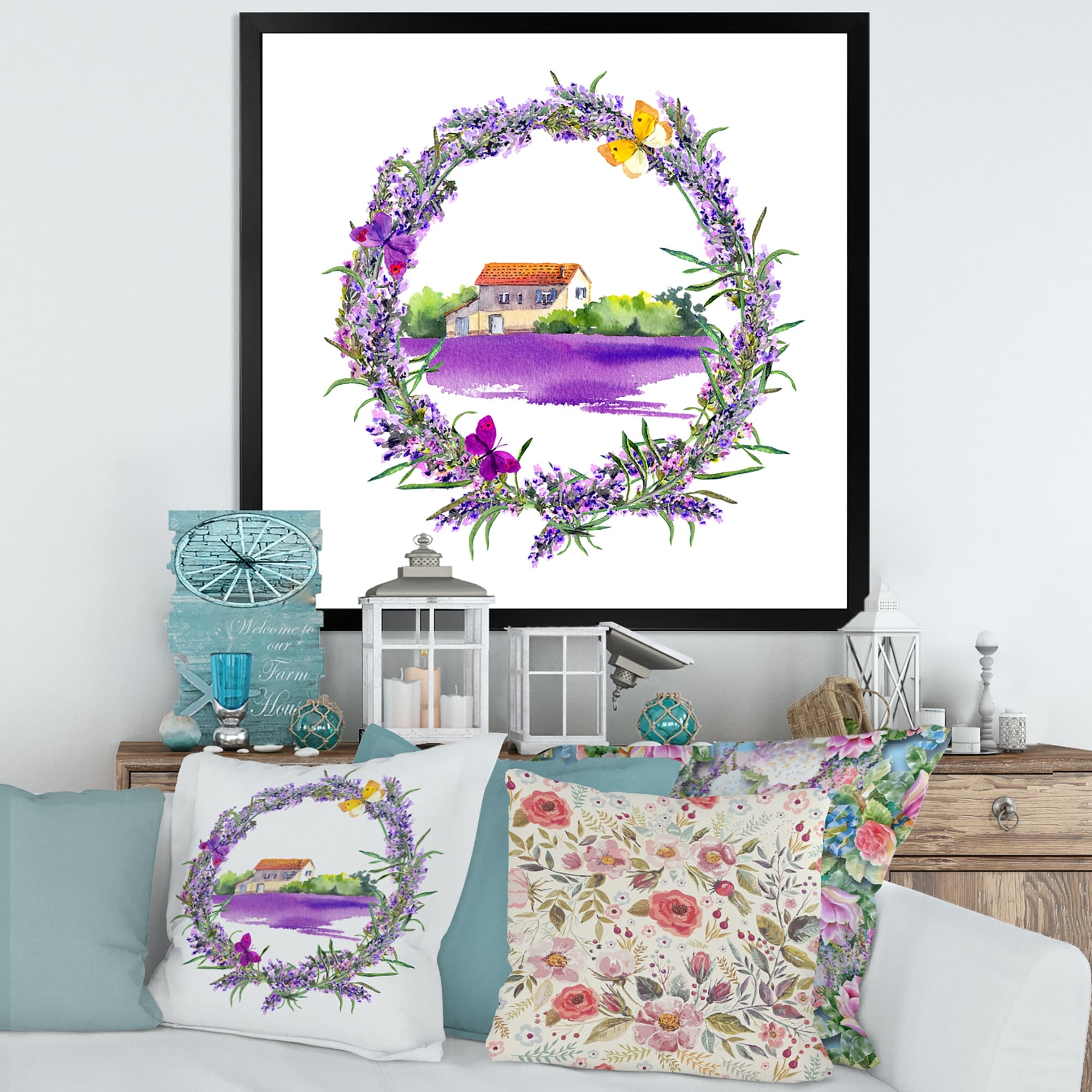 Designart "Rural Farm Provencal House And Lavender Field" Country Framed Art Print
