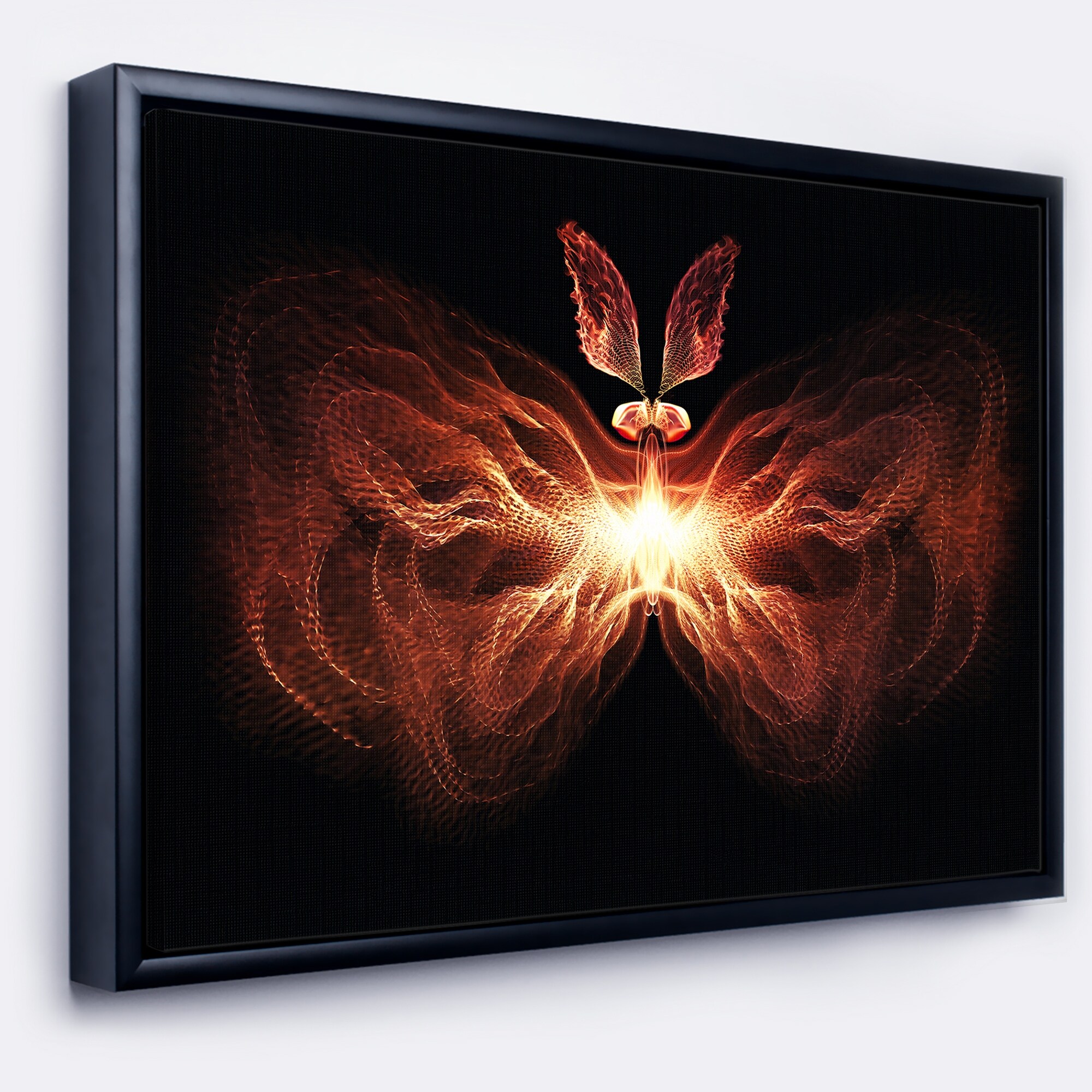 Designart "Fire in Middle Fractal Butterfly" Abstract Framed Canvas Art Print