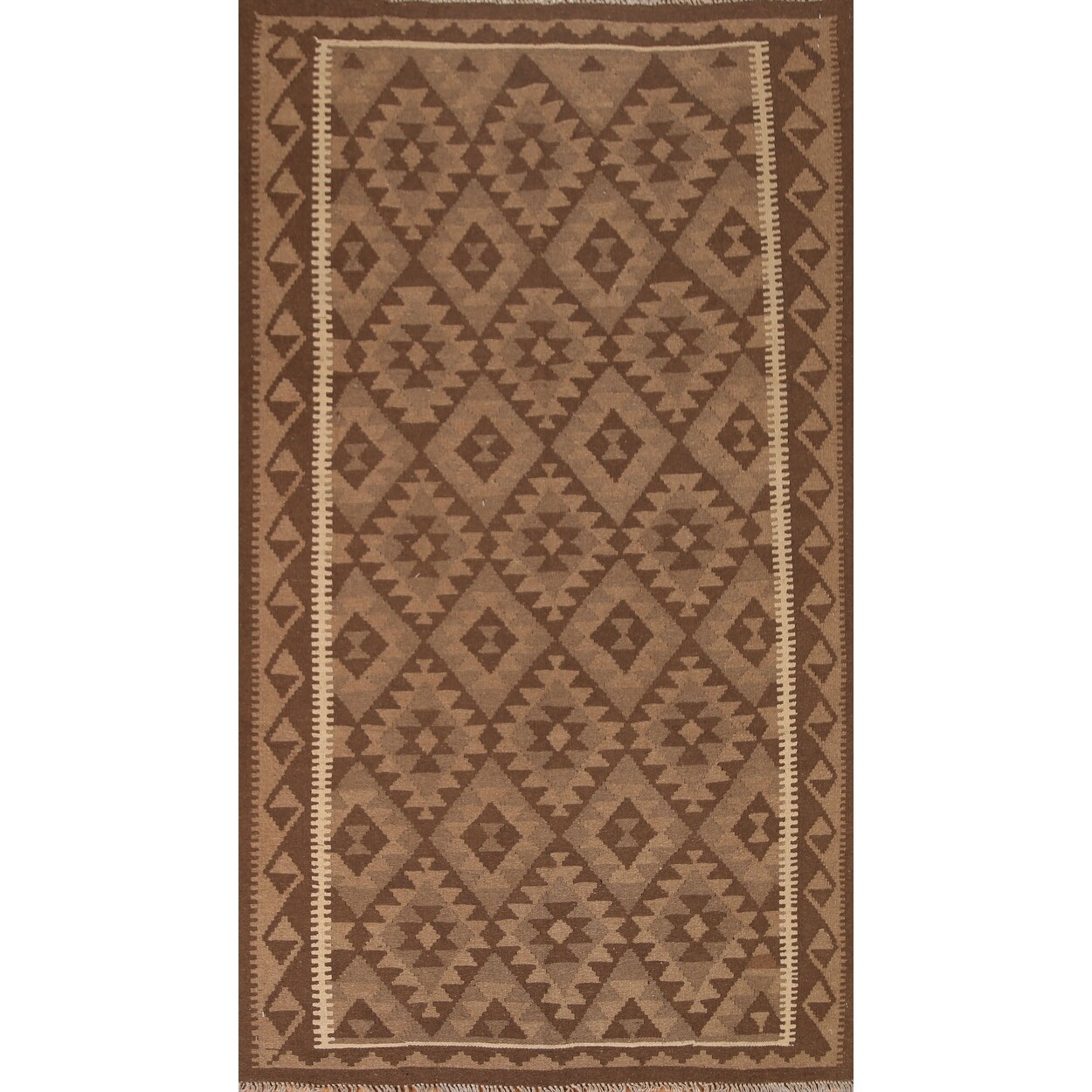 Brown Geometric Tribal Kilim Oriental Wool Area Rug Flat-woven Carpet - 5'3" x 8'3"
