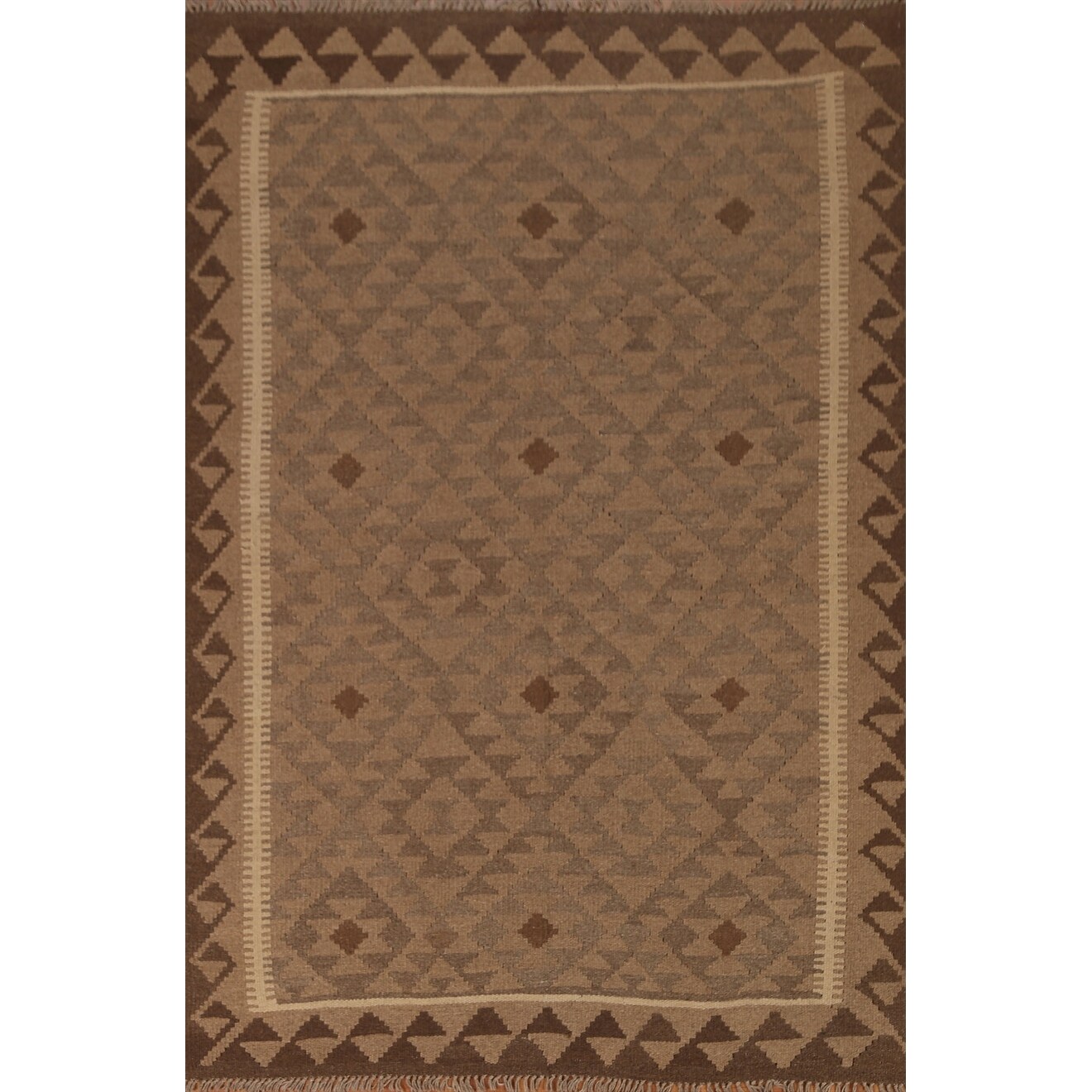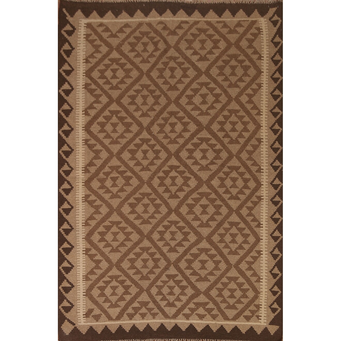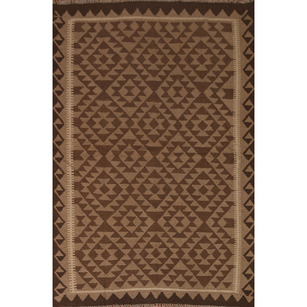 Brown Kilim Earth Tone Area Rug Flat-weave Oriental Wool Carpet - 5'3" x 6'7"
