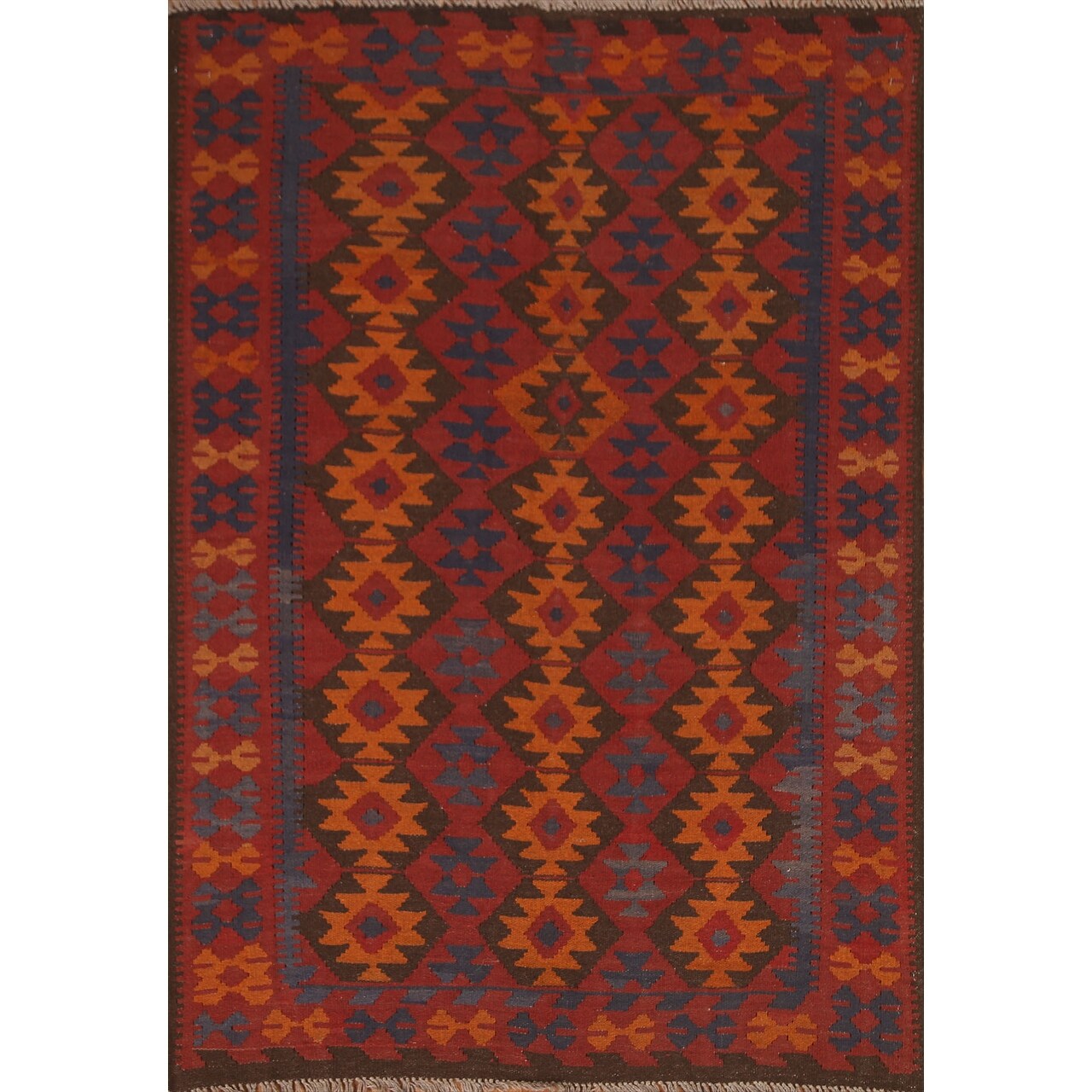Geometric Kilim Oriental Tribal Area Rug Flat-weave Wool Carpet - 5'0" x 6'7"