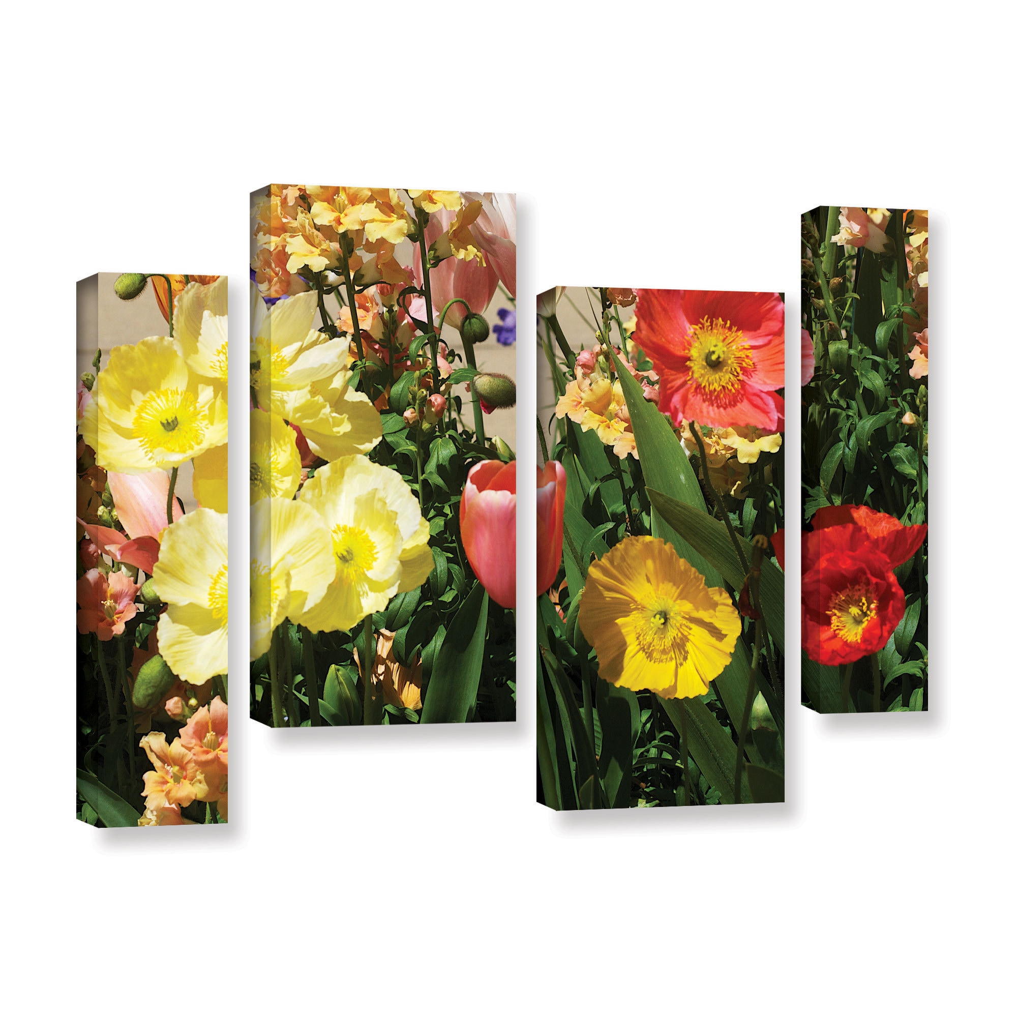 ArtWall Allan Friedlander 'Yellow Flowers' 4 Piece Gallery-wrapped Canvas Staggered Set - Red