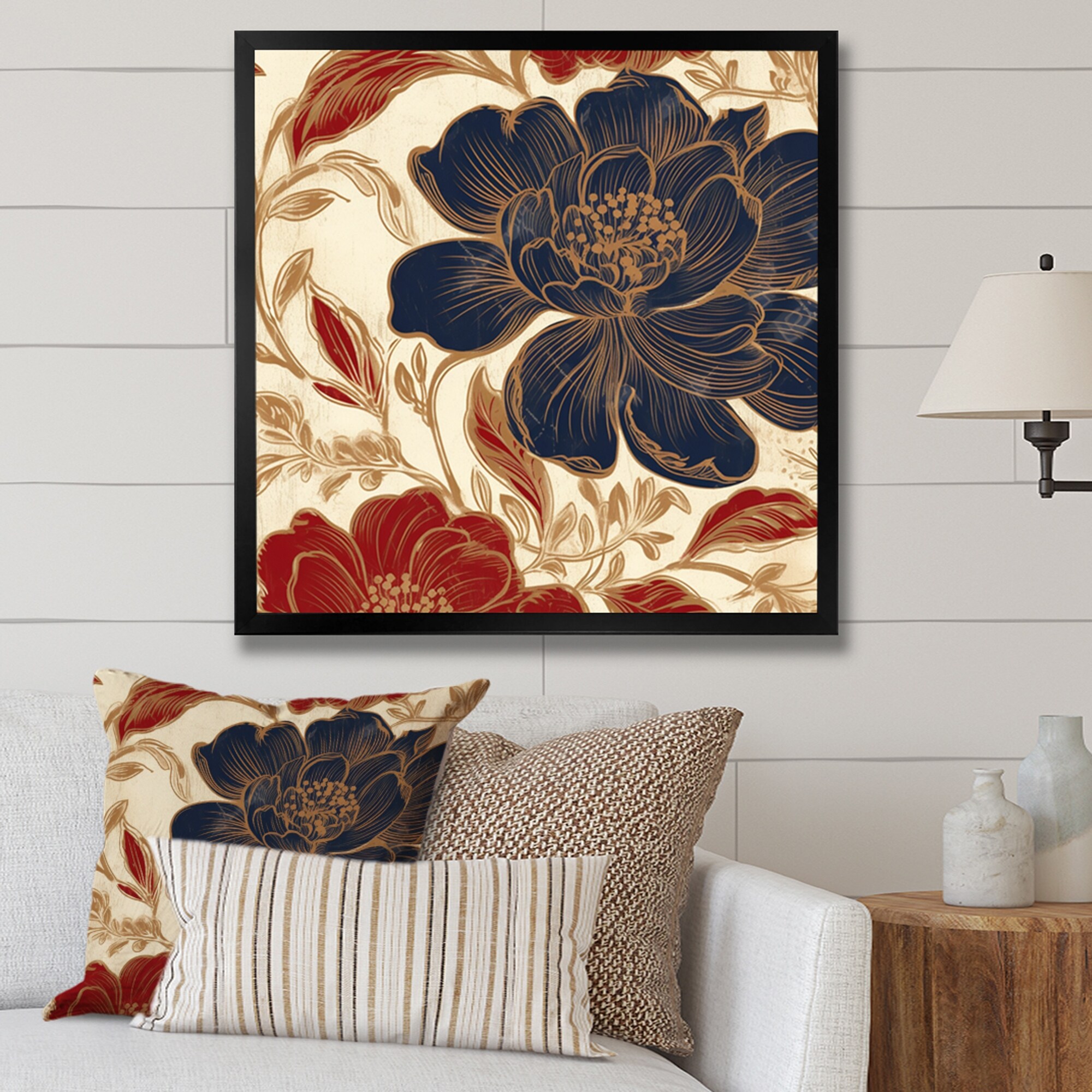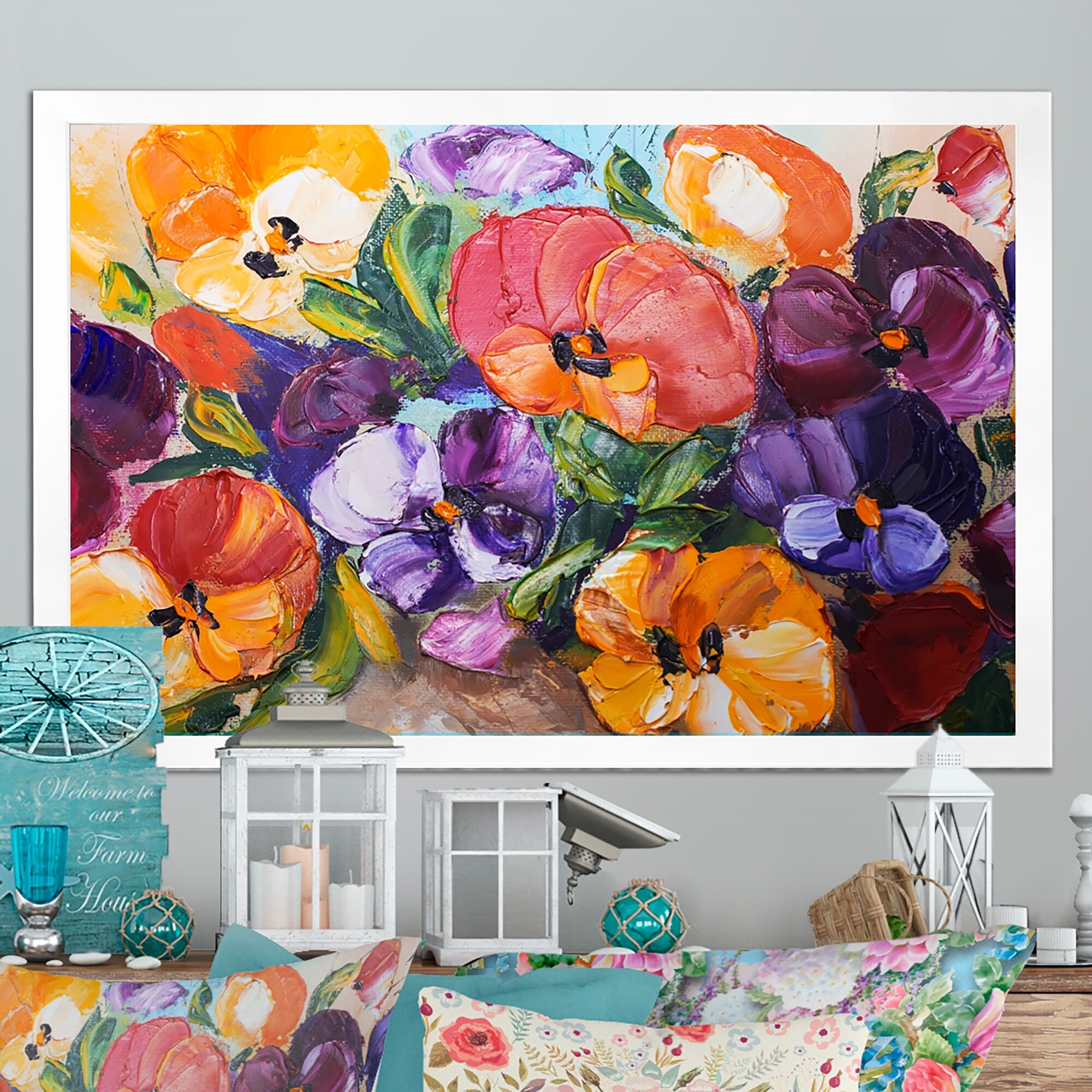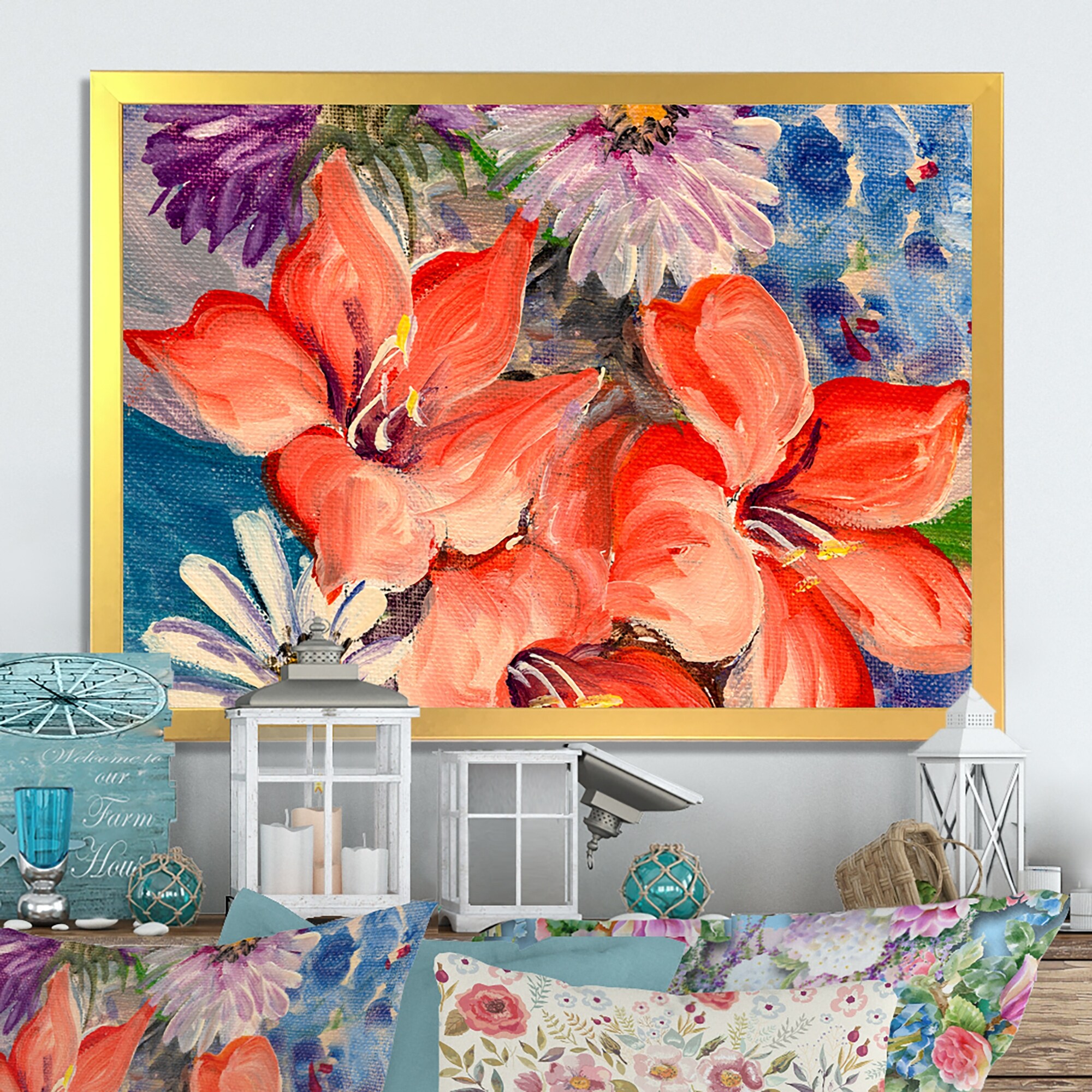 Designart "Red Pink And Blue Flowers" Traditional Framed artwork