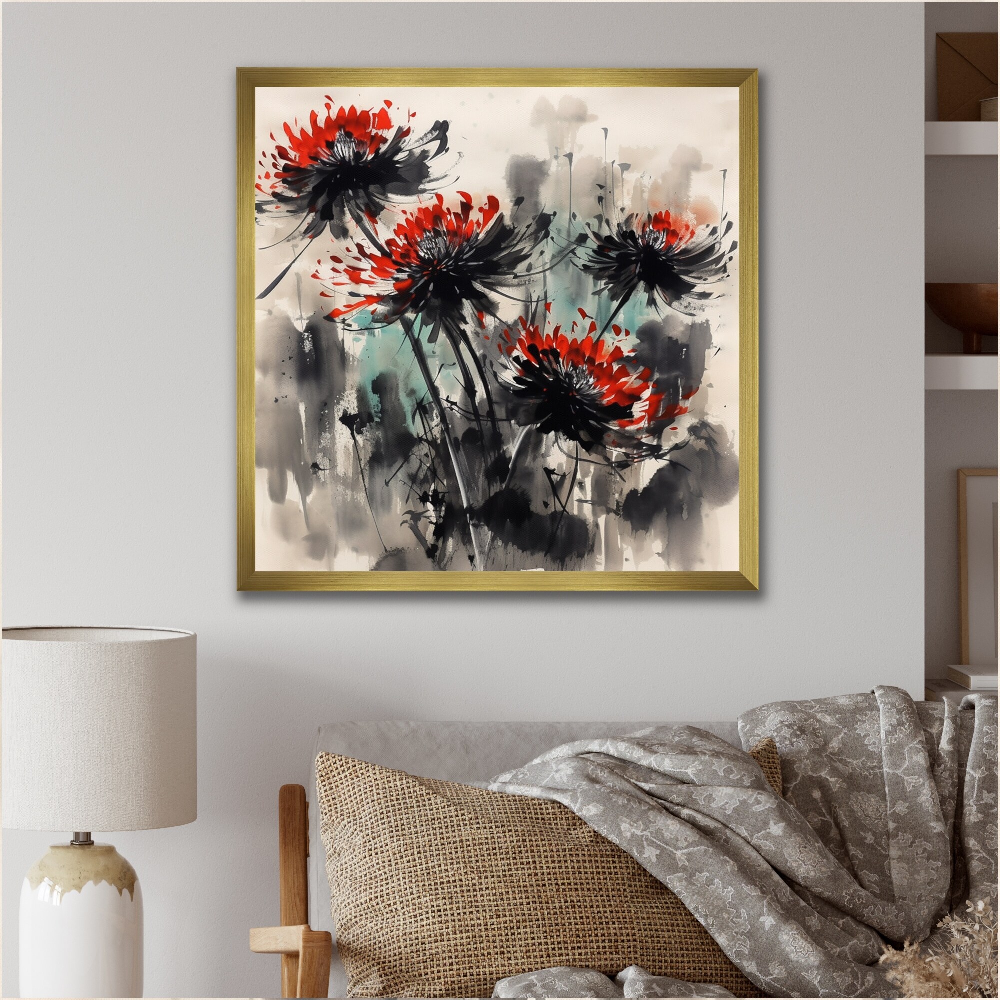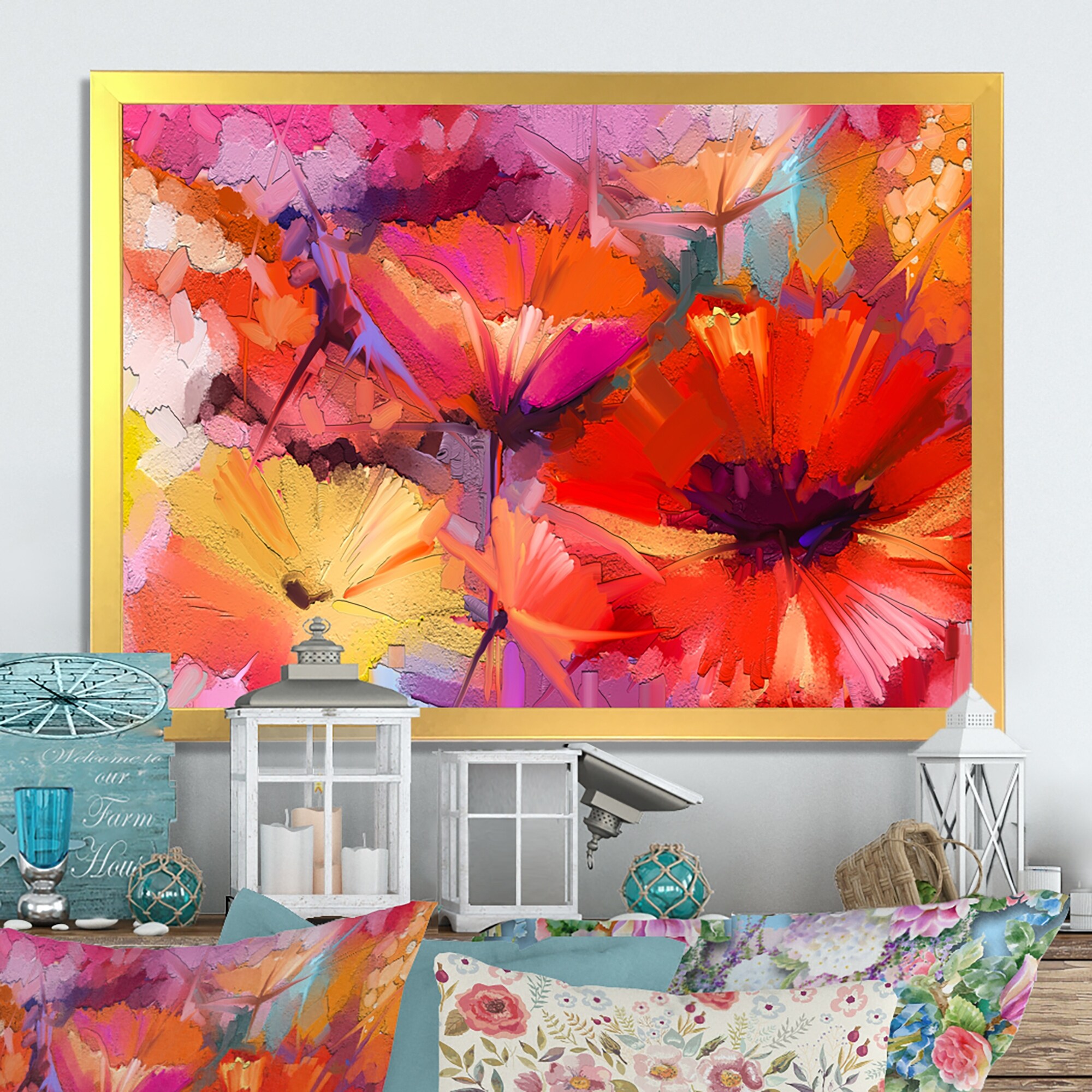 Designart "Abstract Red Gerbera Flowers" Traditional Framed Wall Decor