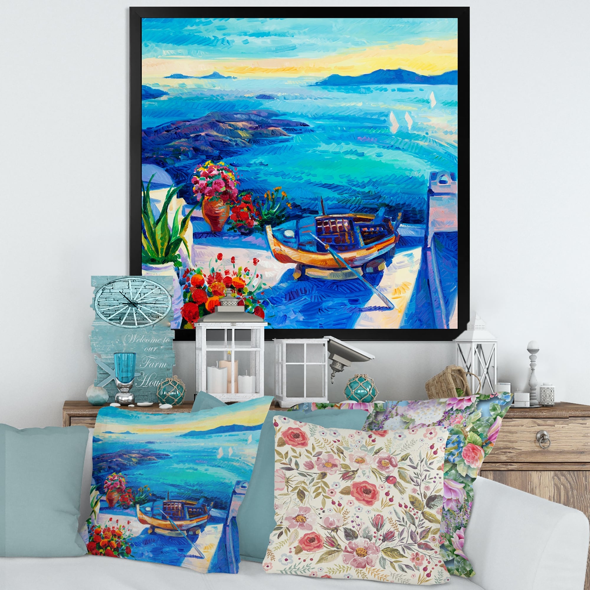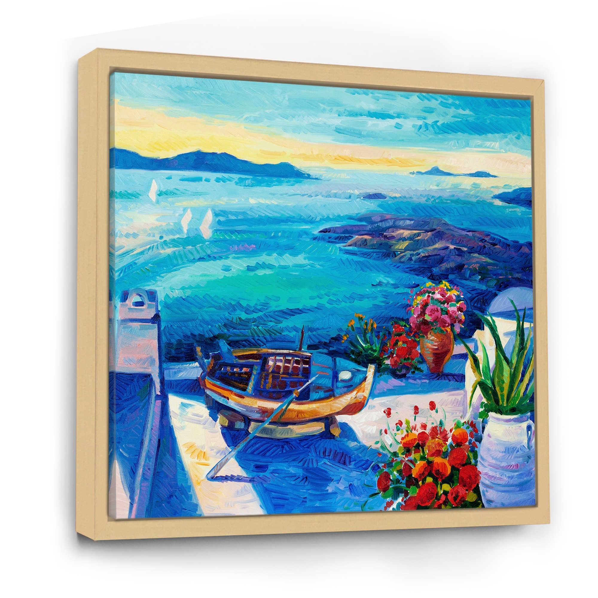 Designart "Sea VIew With Little Red Flowers" Nautical & Coastal Framed Canvas Wall Art Print