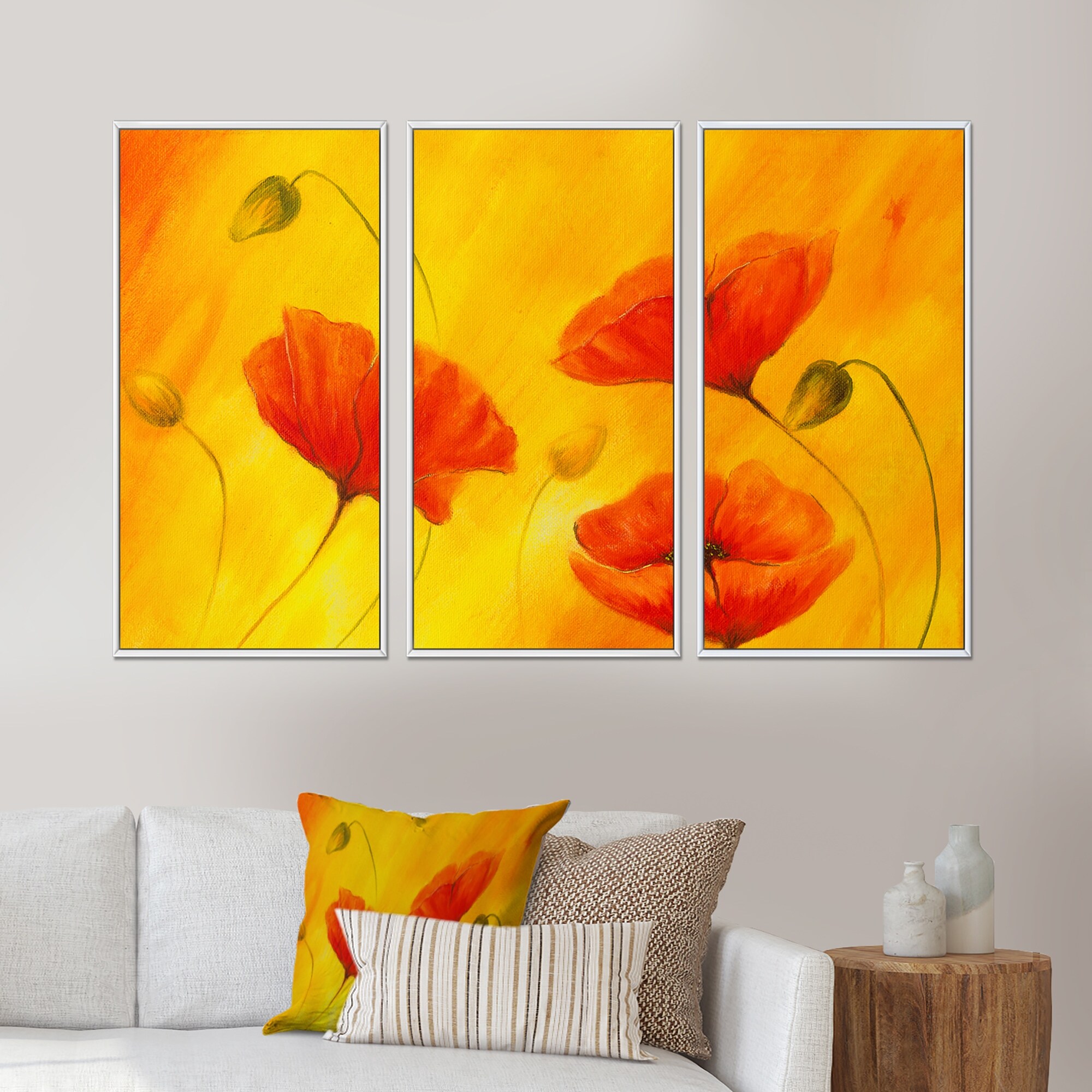 Designart "Red Poppy Flower" Floral Framed Art Prints Set of 3 - 4 Colors of Frames