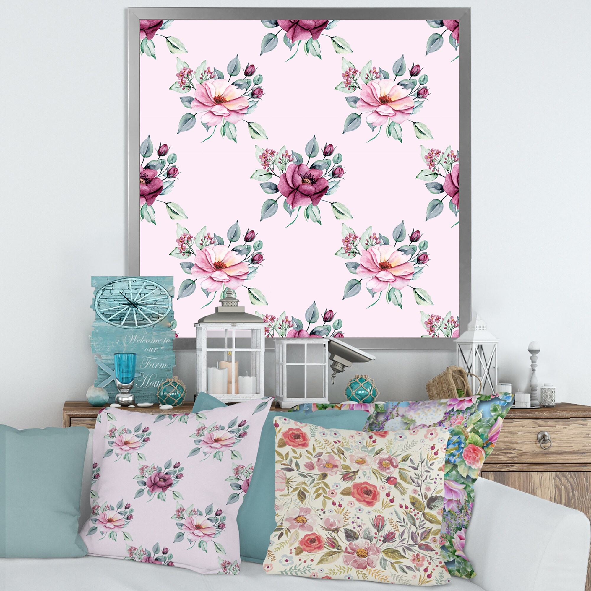 Designart "Pink And Red Spring Flowers on Pink" Patterned Framed Art Print