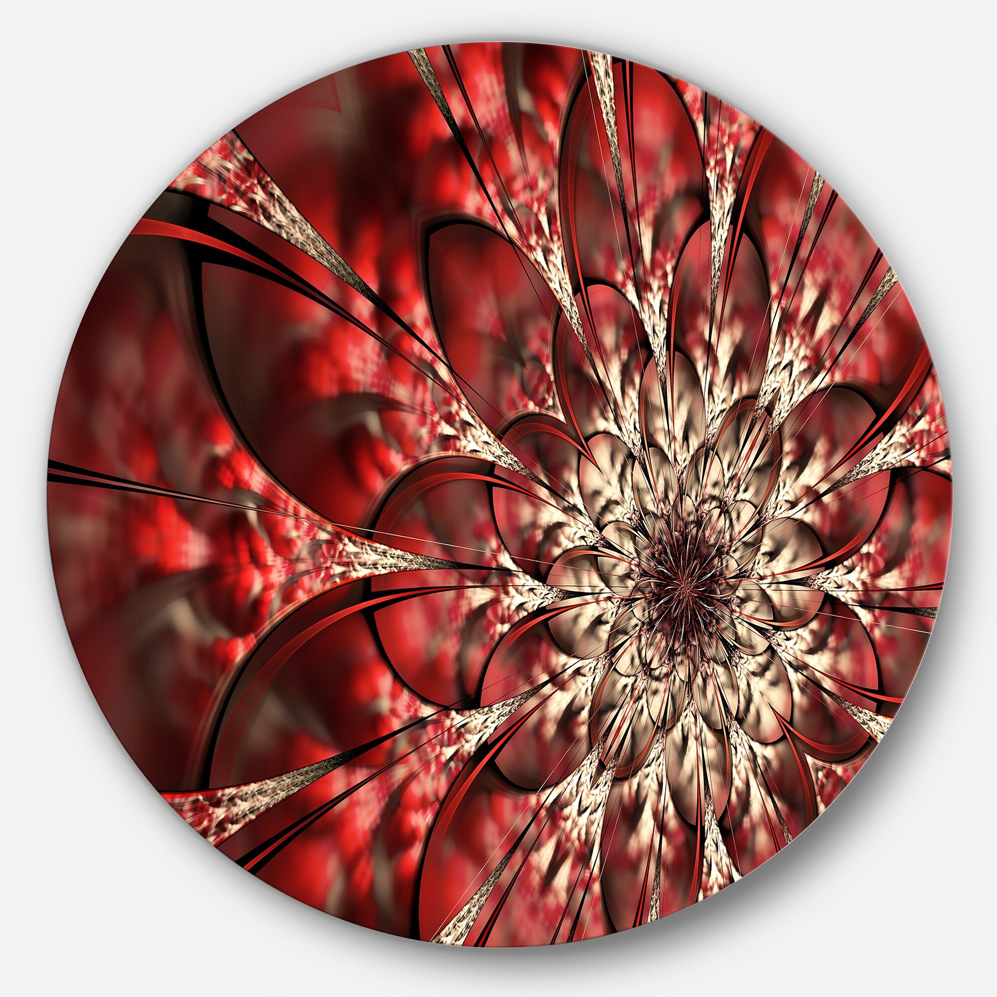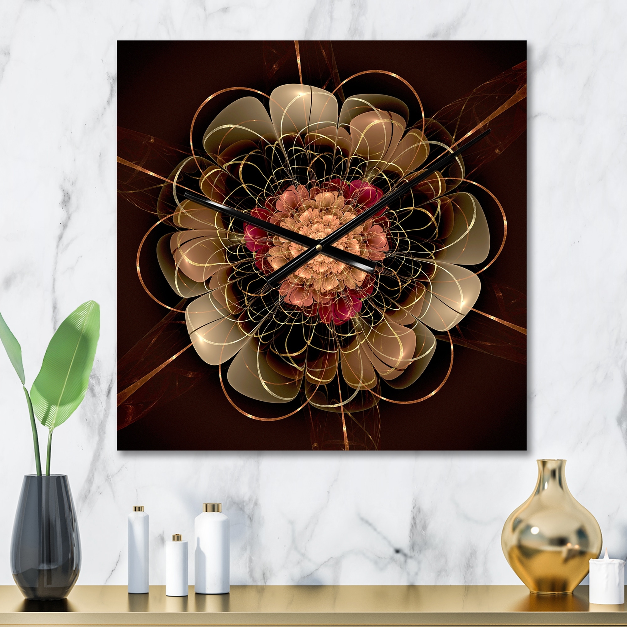 Designart 'Dark Gold Red Fractal Flower Pattern' Modern wall clock