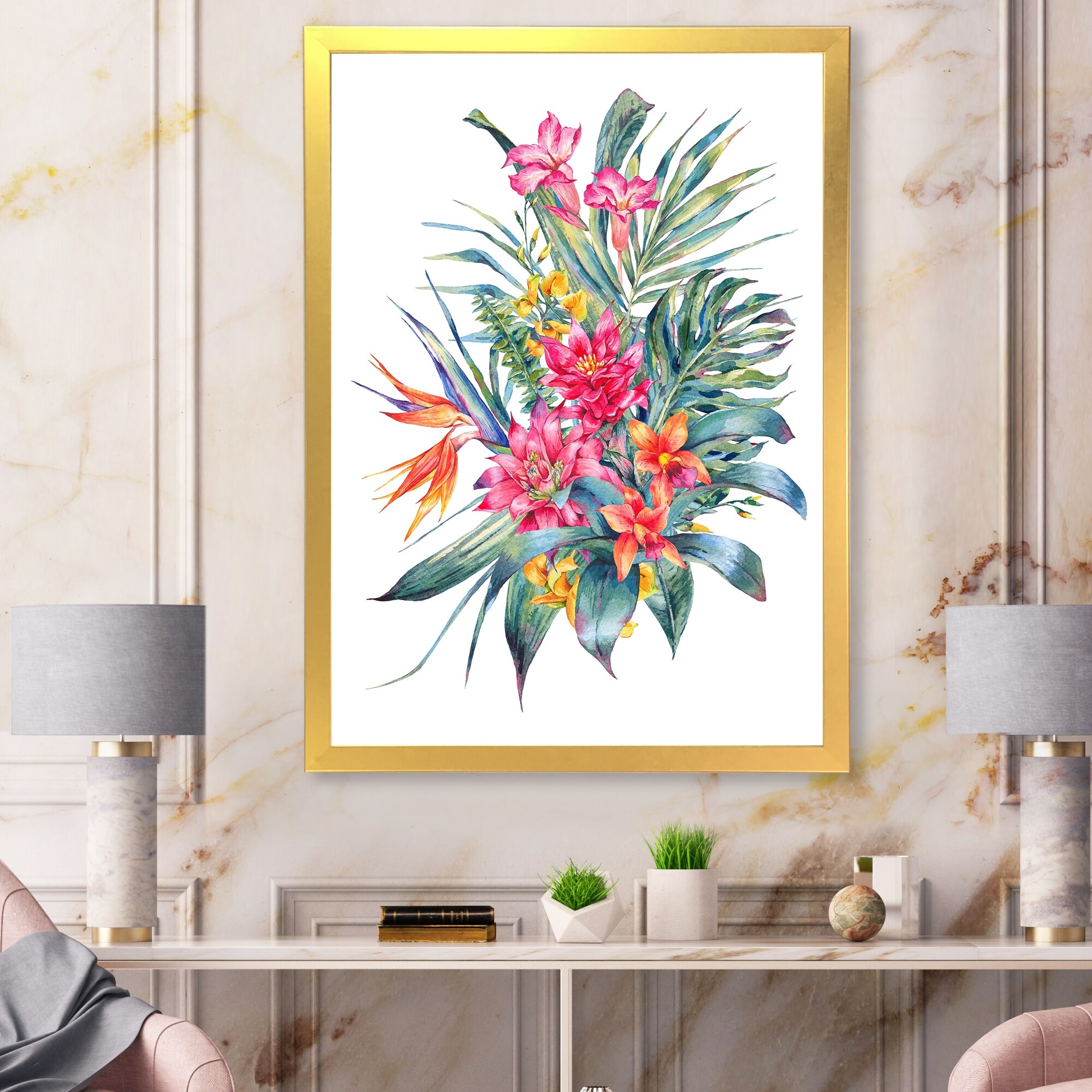 Designart "Bouquet Of Tropical Red Flowers" Tropical Framed Art Print