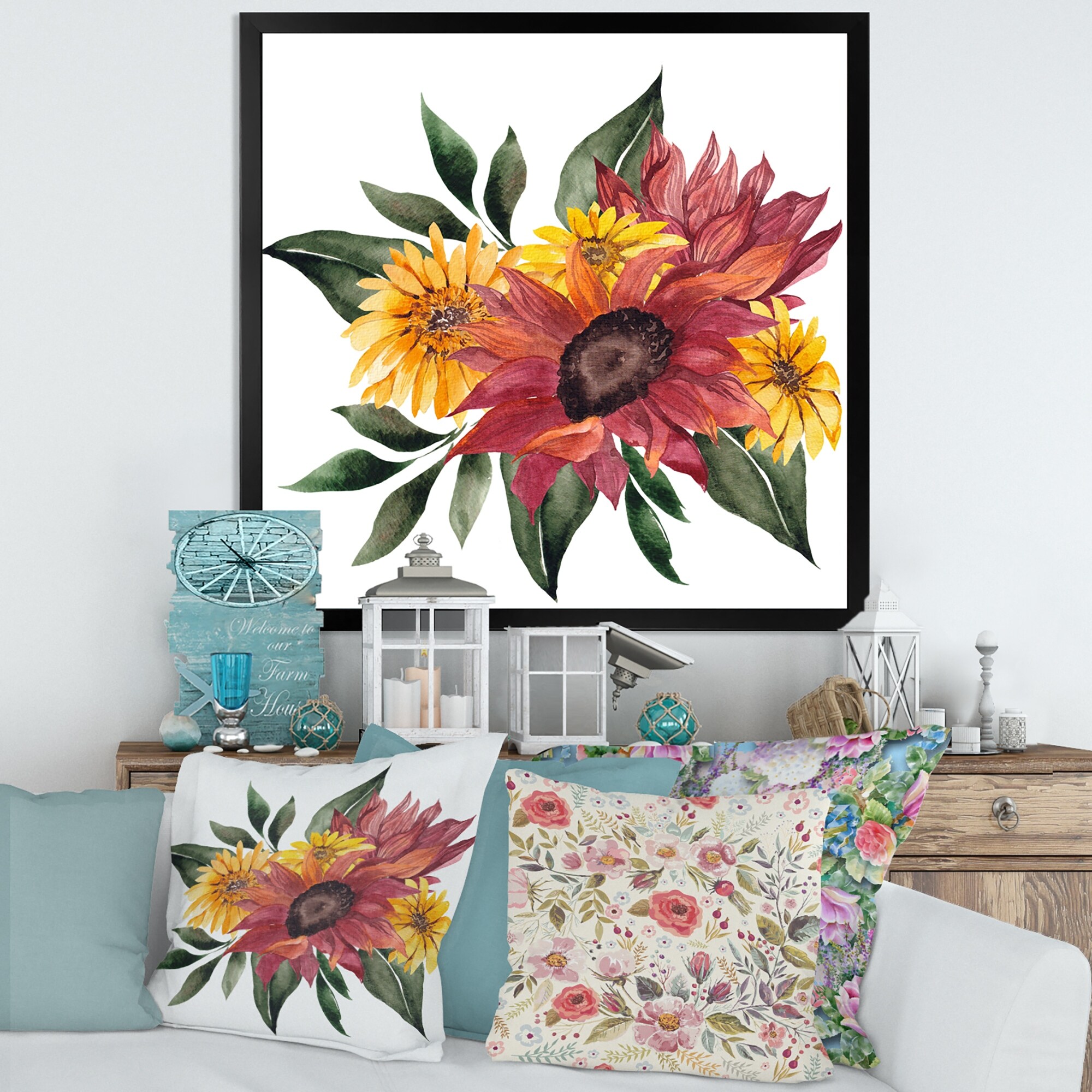 Designart "Autumn Bouquet With Red And Yellow Flowers I" Traditional Framed Art Print