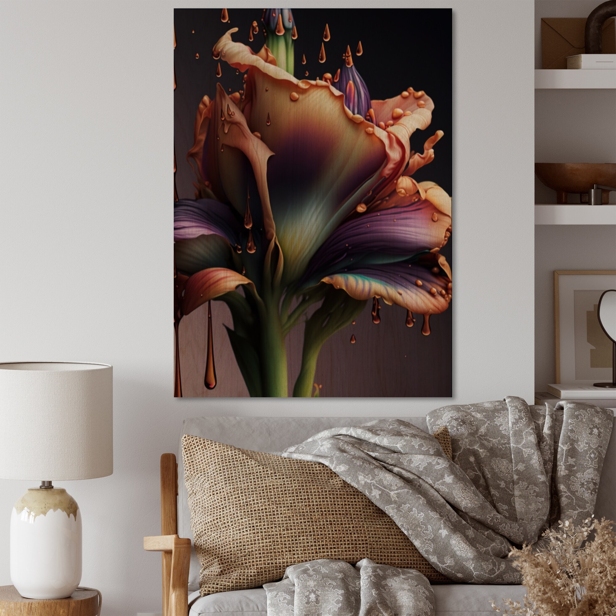 Designart 'Red Gladiolus Flowers III' Floral Wood Wall Art - Natural Pine Wood