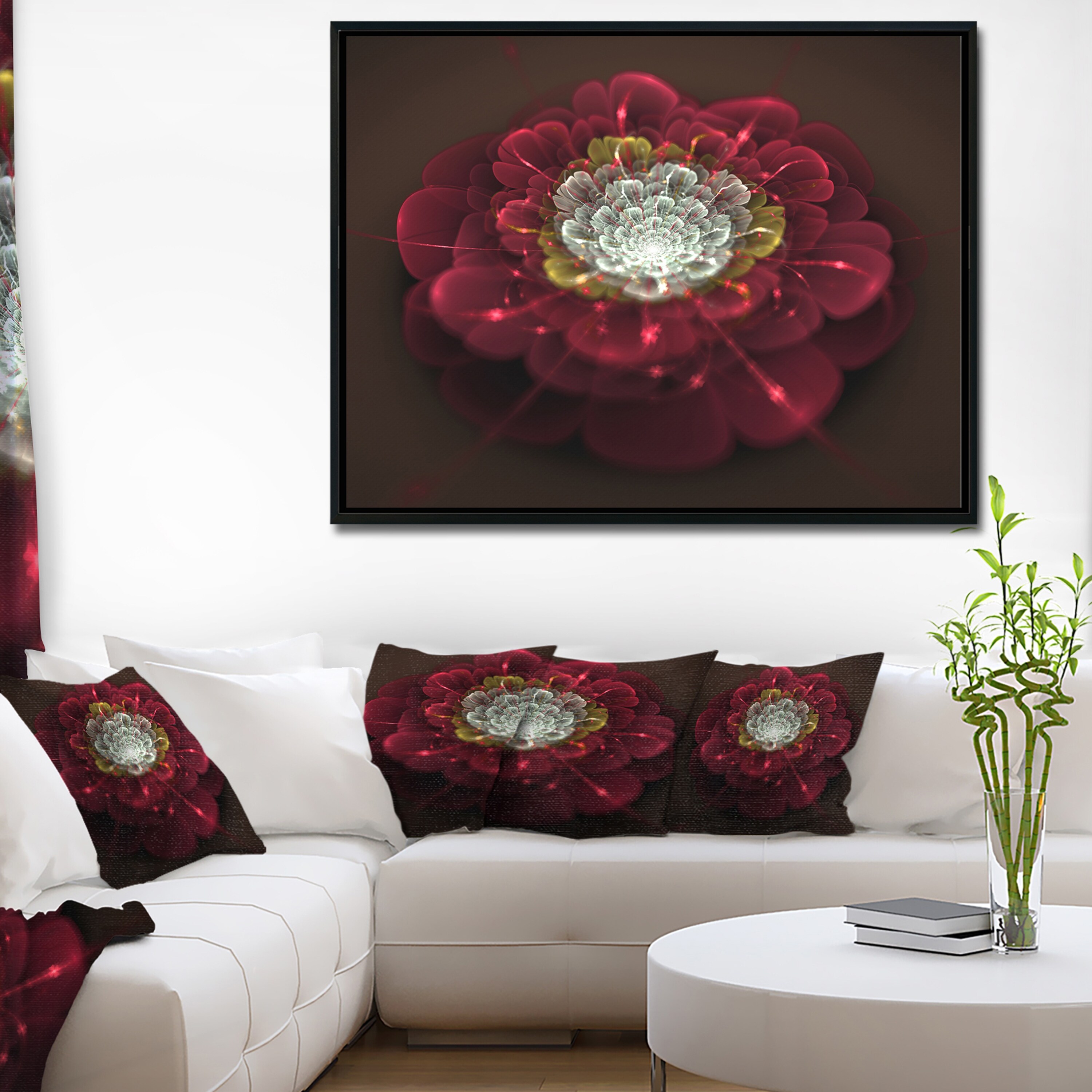 Designart "Red Fractal Flower with White" Floral Art Framed Canvas Print
