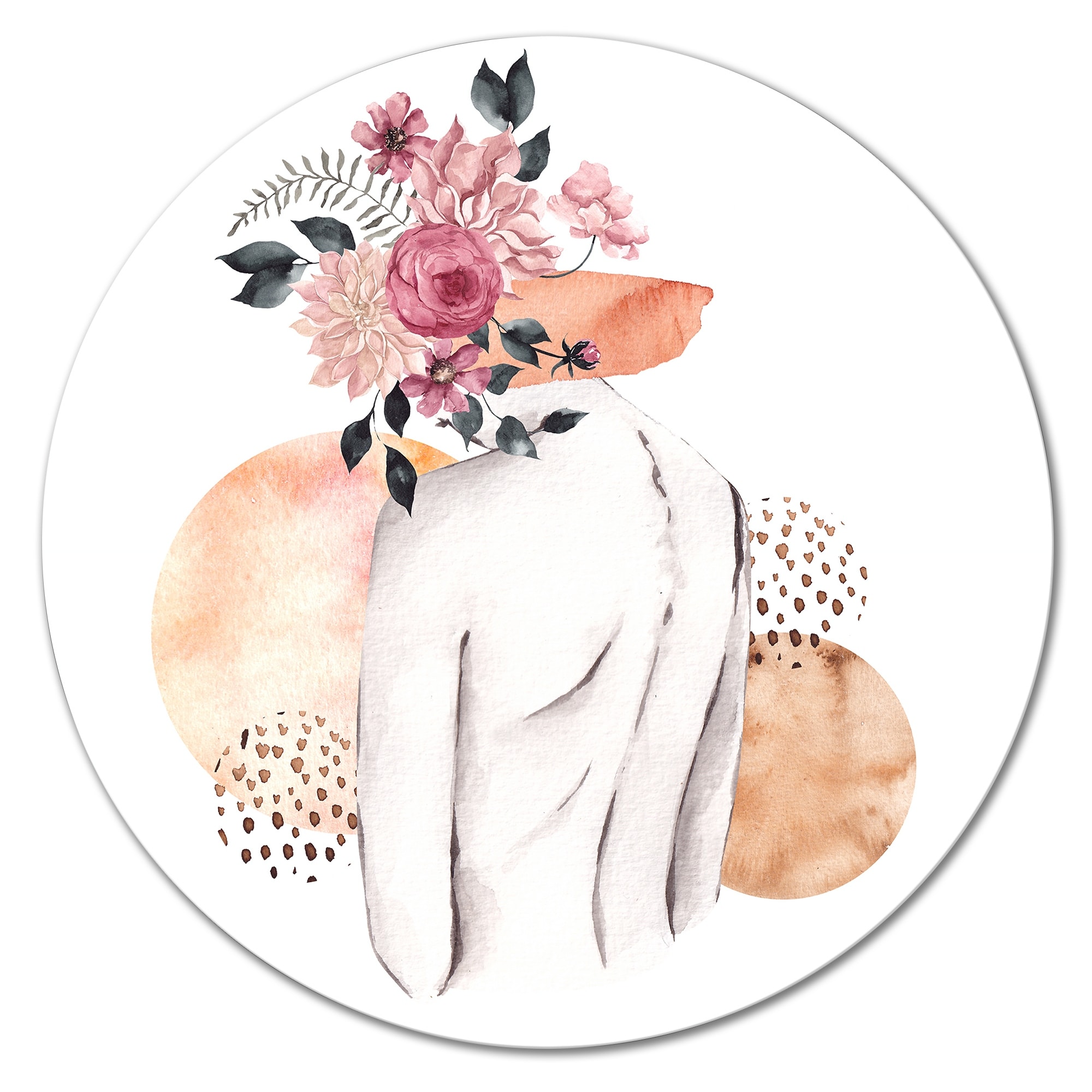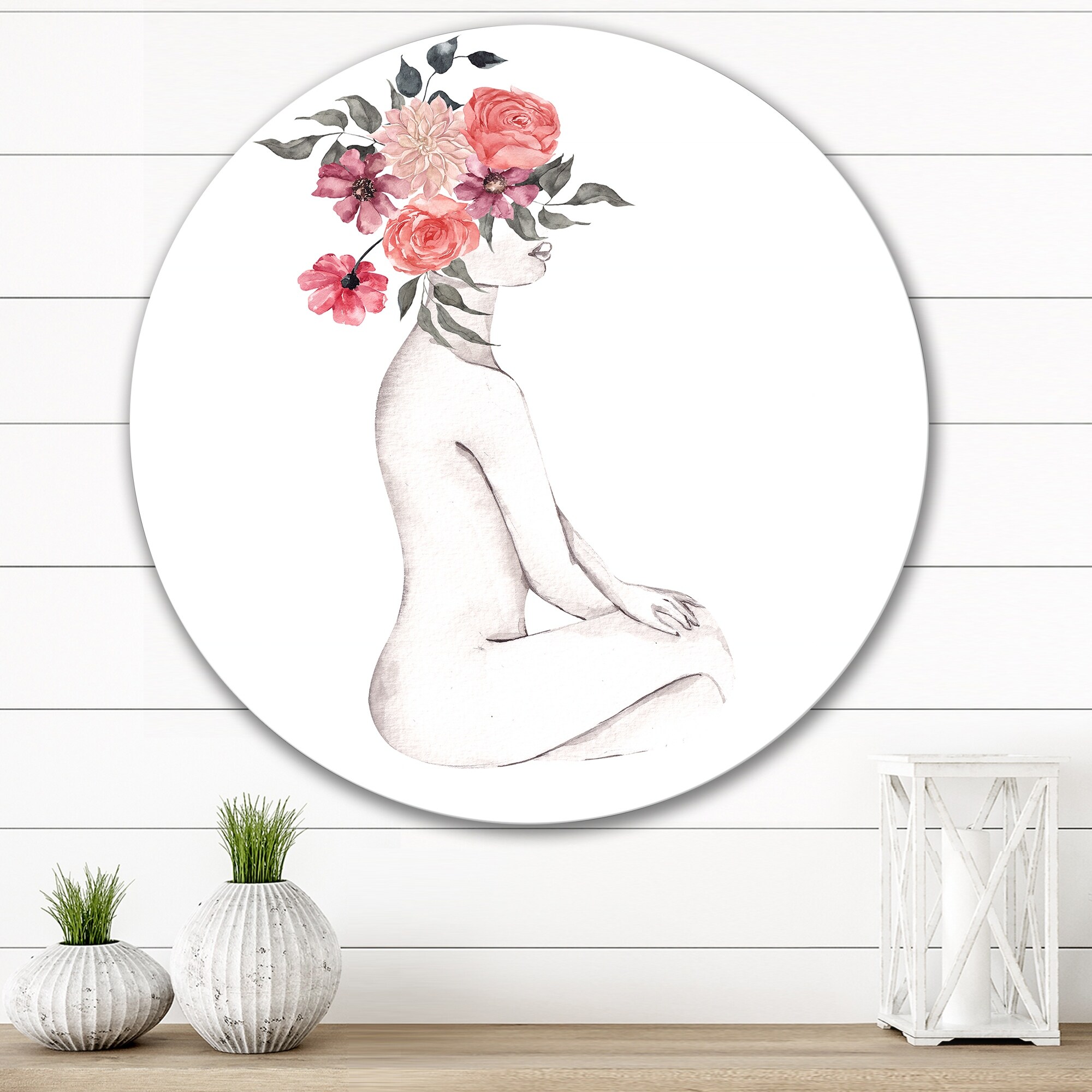 Designart 'Woman Silhouette With Red And Purple Flowers II' Glam Metal Circle Wall Art