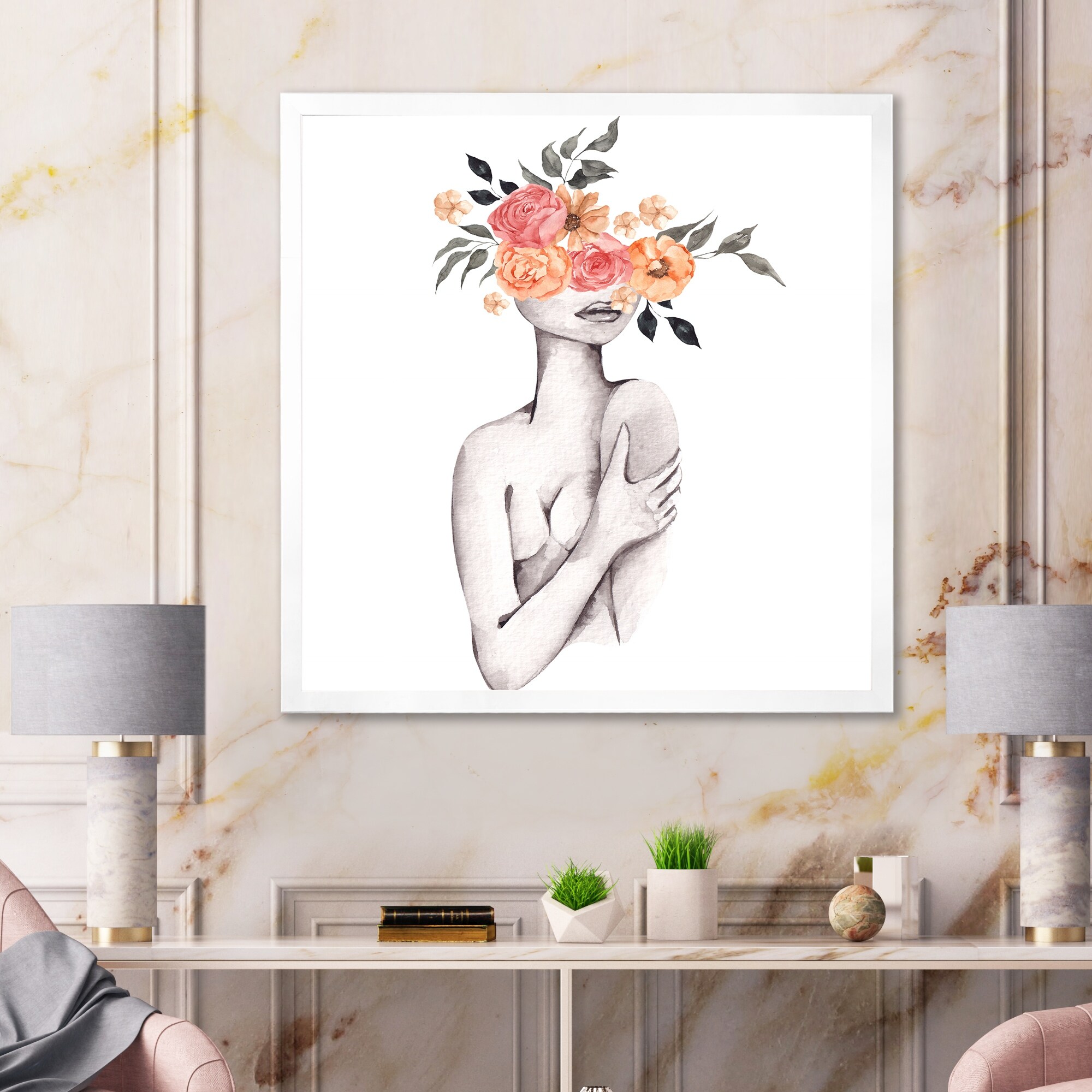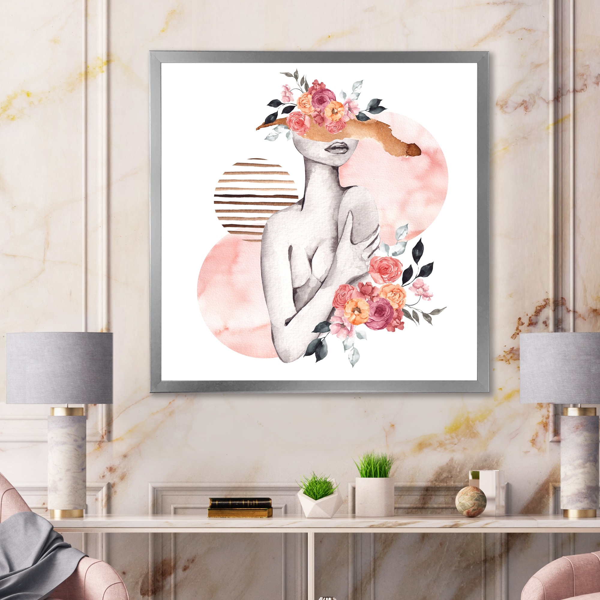 Designart "Woman Silhouette With Red And Purple Flowers IV" Glam Framed Art Print