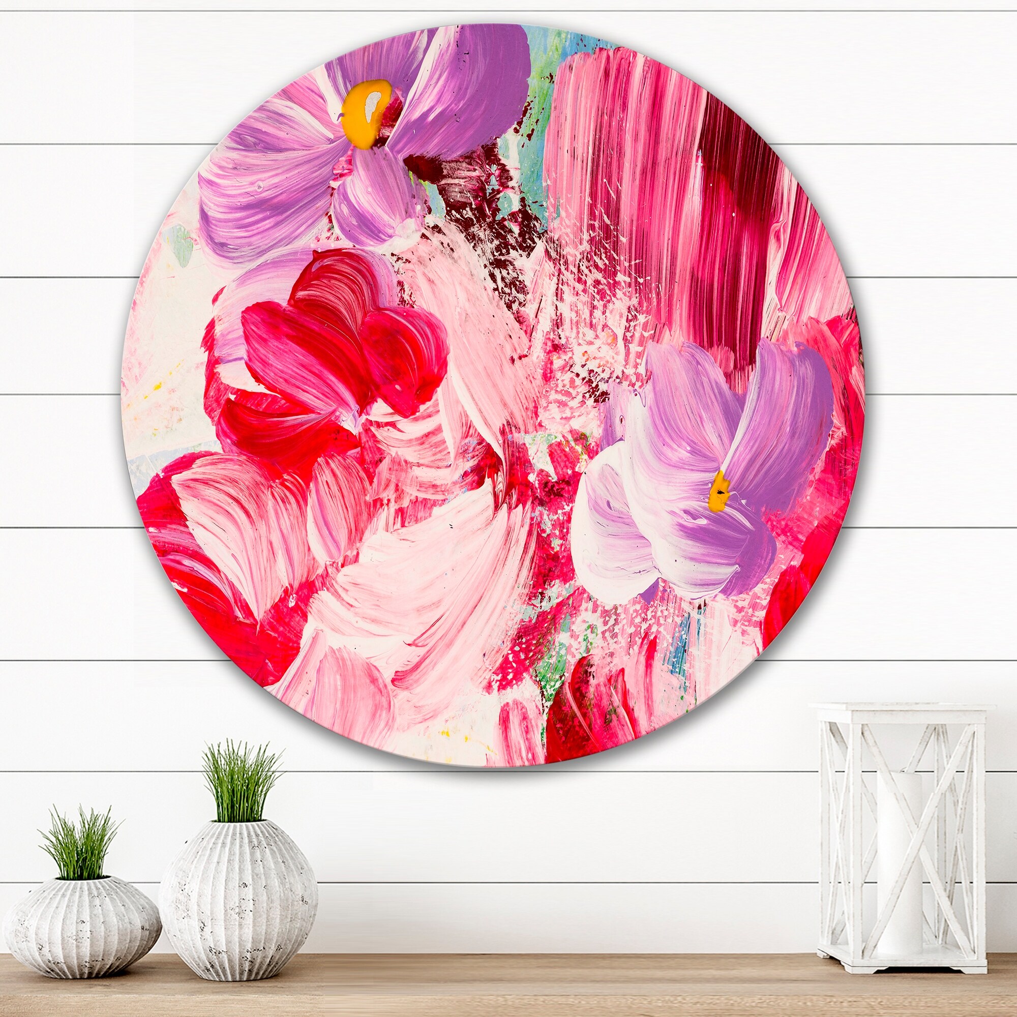 Designart 'Red And Purple Abstract Flowers' Modern Metal Circle Wall Art