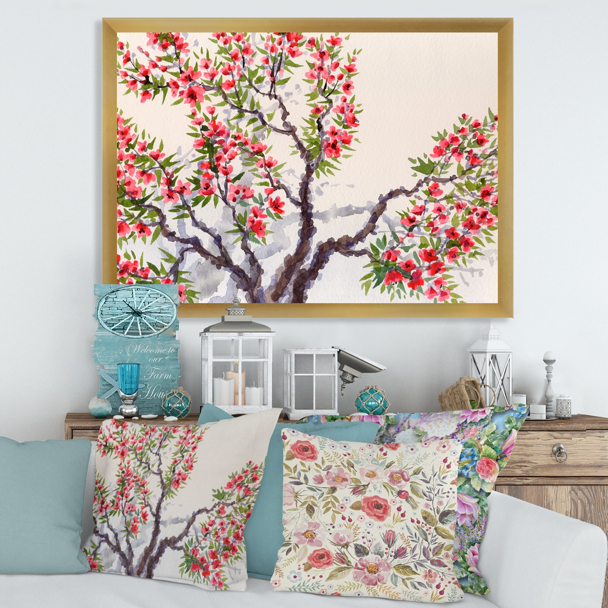 Designart "Red Flowers on the Blossoming Tree II" Traditional Framed Art Print