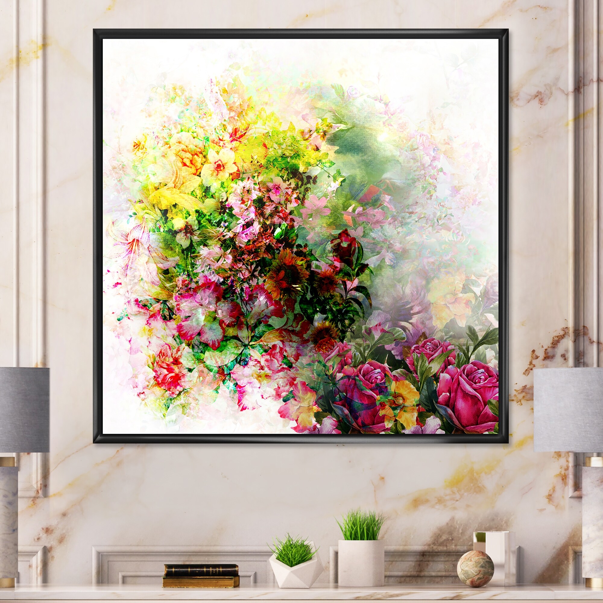 Designart "Yellow And Red Vintage Flowers VI" Traditional Framed Wall Decor