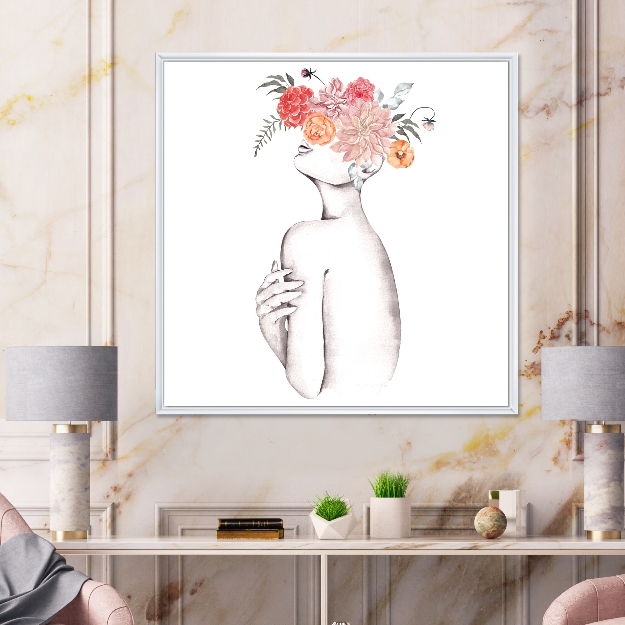 Designart "Woman Silhouette With Red And Purple Flowers XVIII" Glam Framed Canvas Wall Art Print