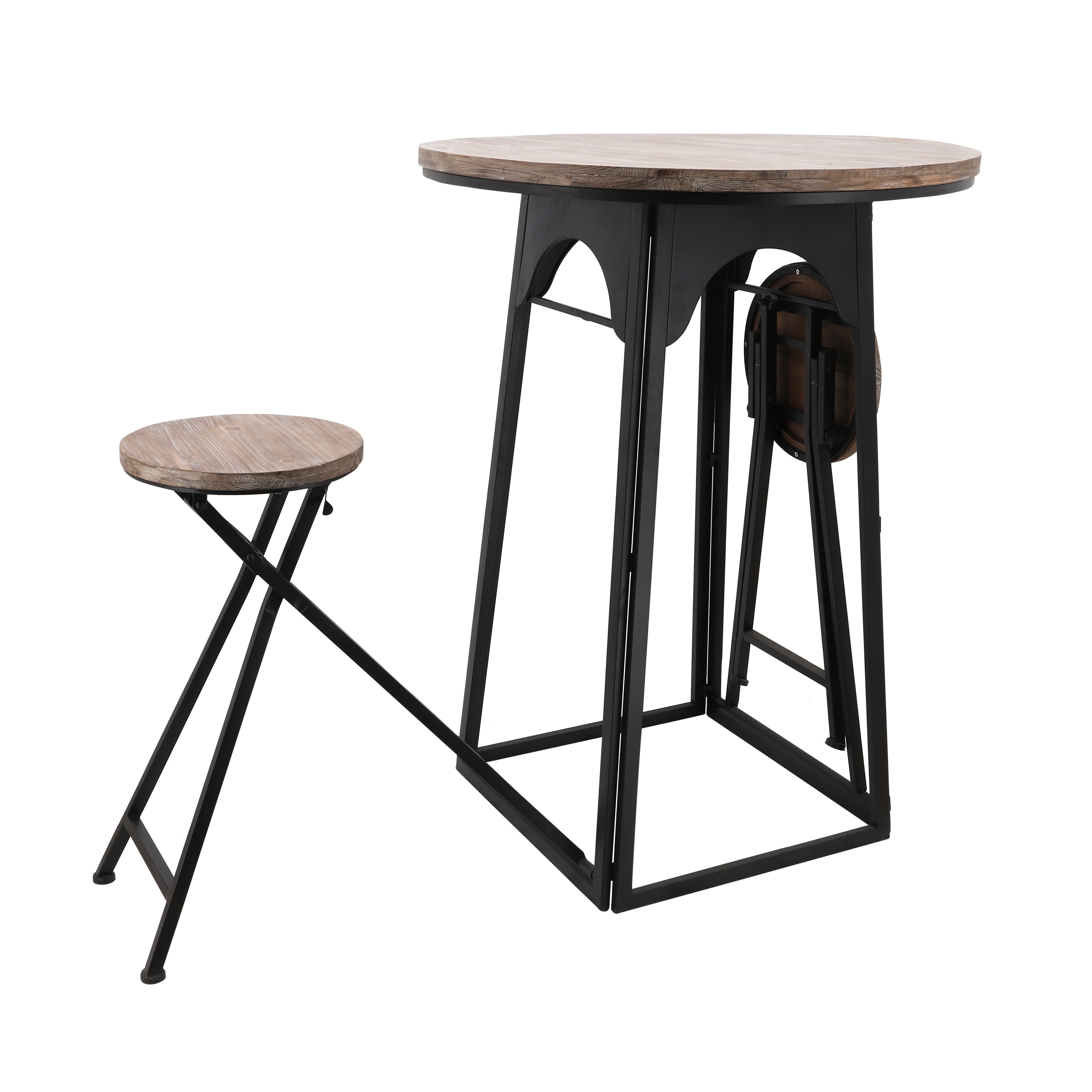 Metal, wood, 41"h Table with Folding Chairs, Brown 40.55"H - 30.32" x 30.32" x 40.55"