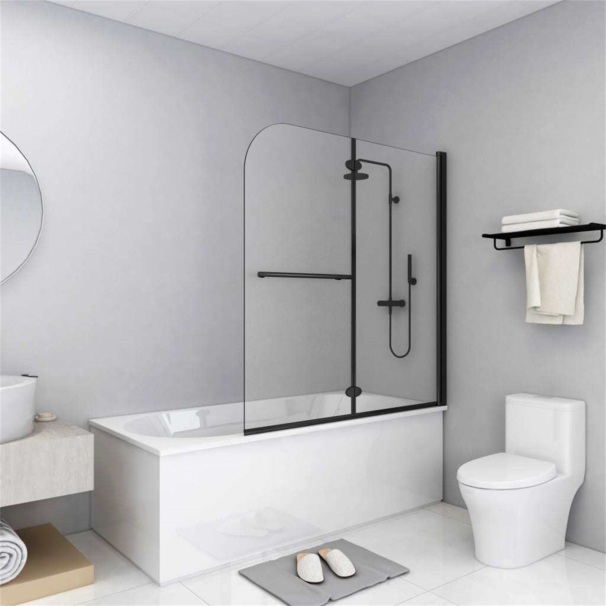 Folding Shower Enclosure 2 Panels 47.2"x 55.1" Black