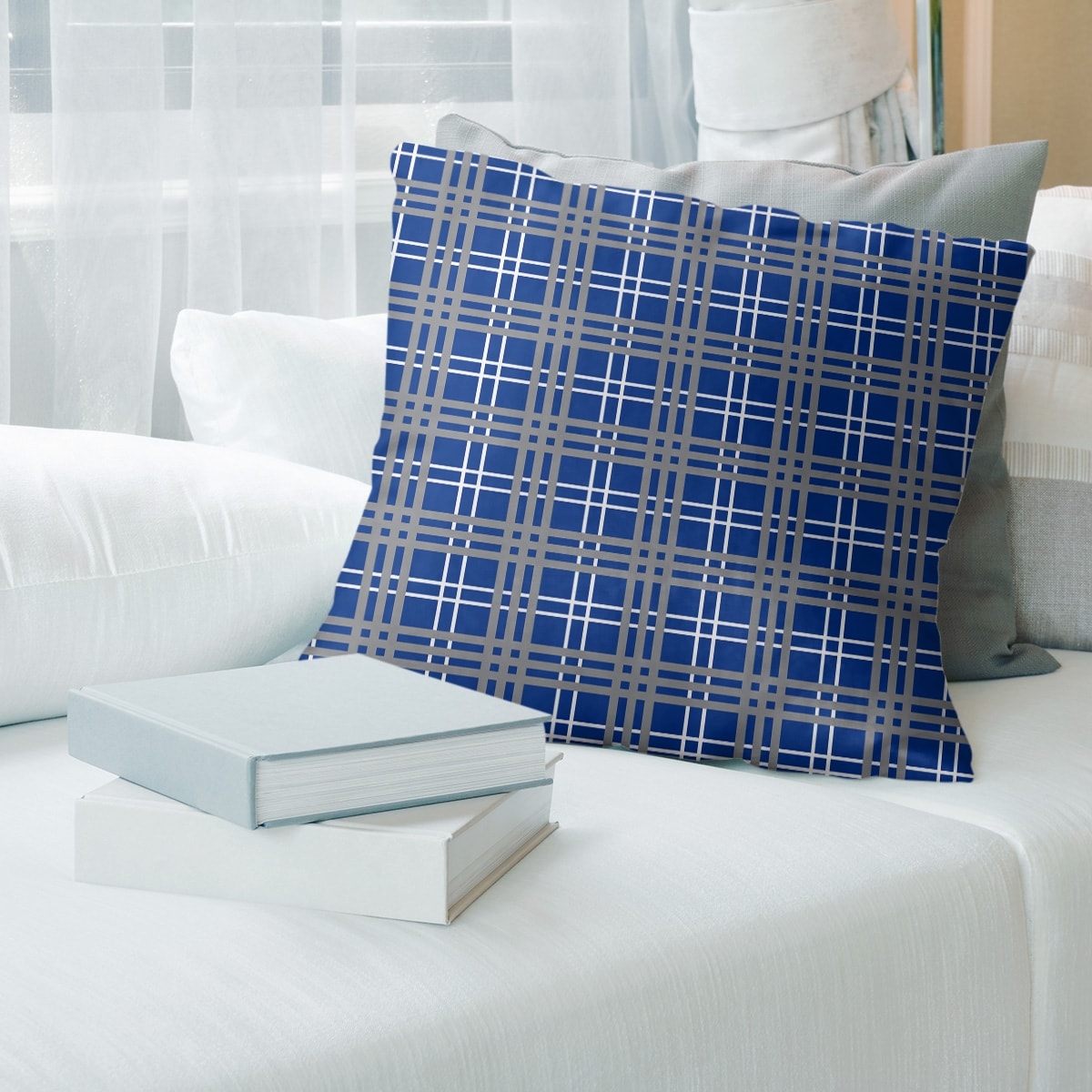 New England Throwback Football Luxury Plaid Accent Pillow-Faux Linen