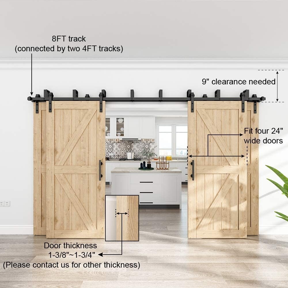 WINSOON 4-18FT Bypass Sliding Barn Door Hardware Kit for Four Doors J Roller