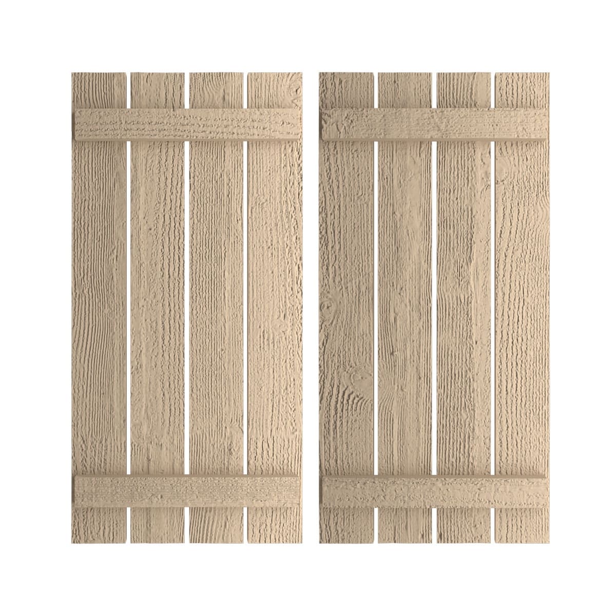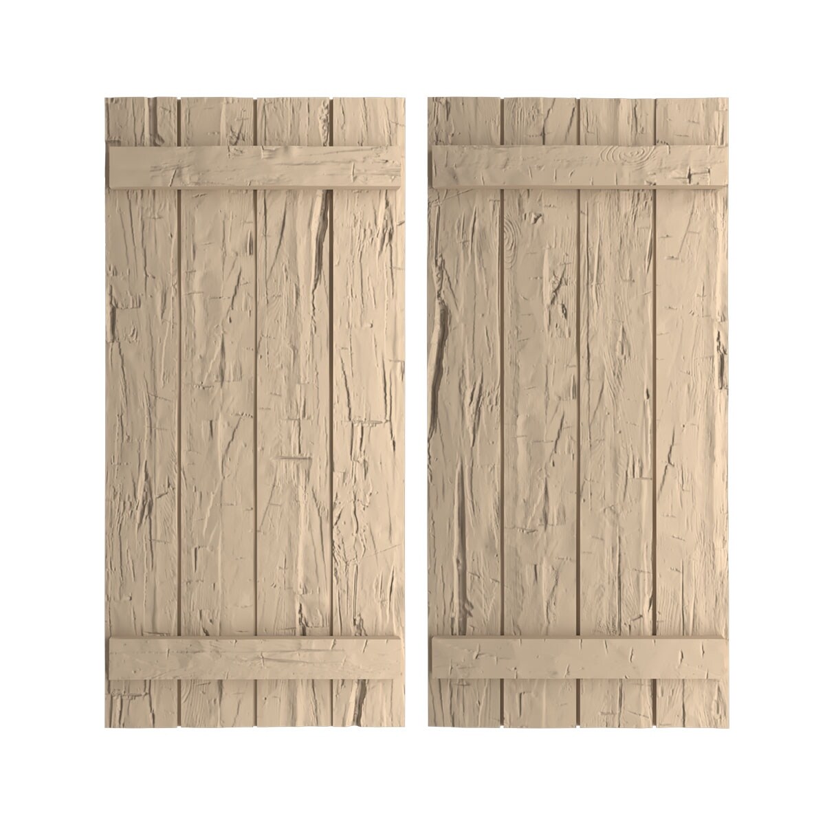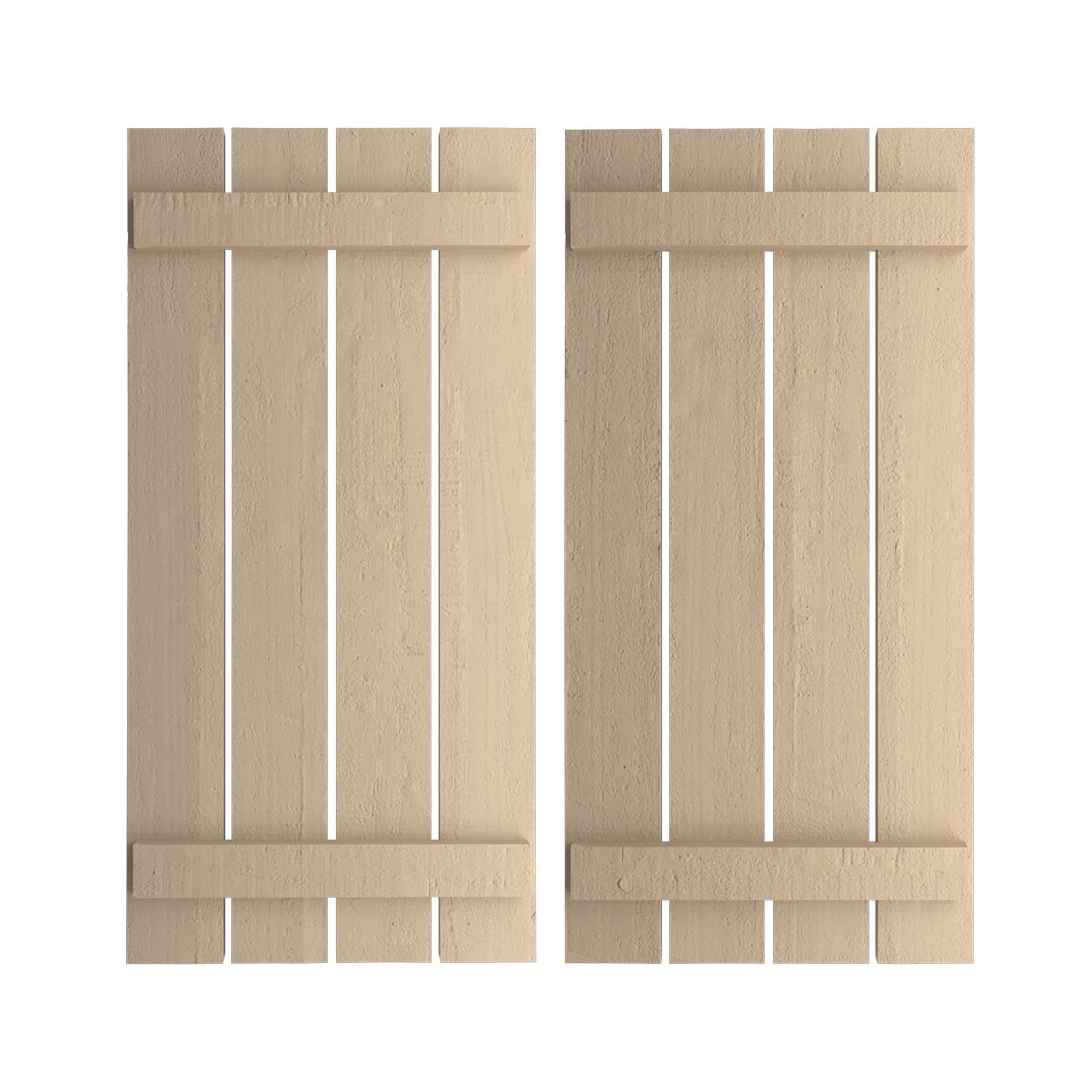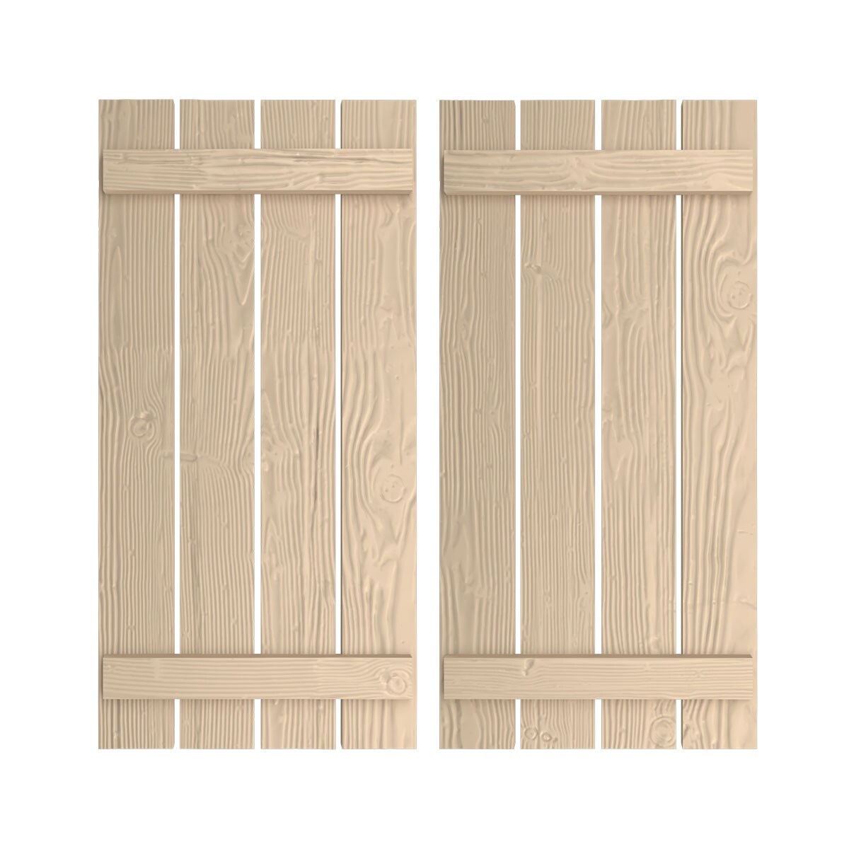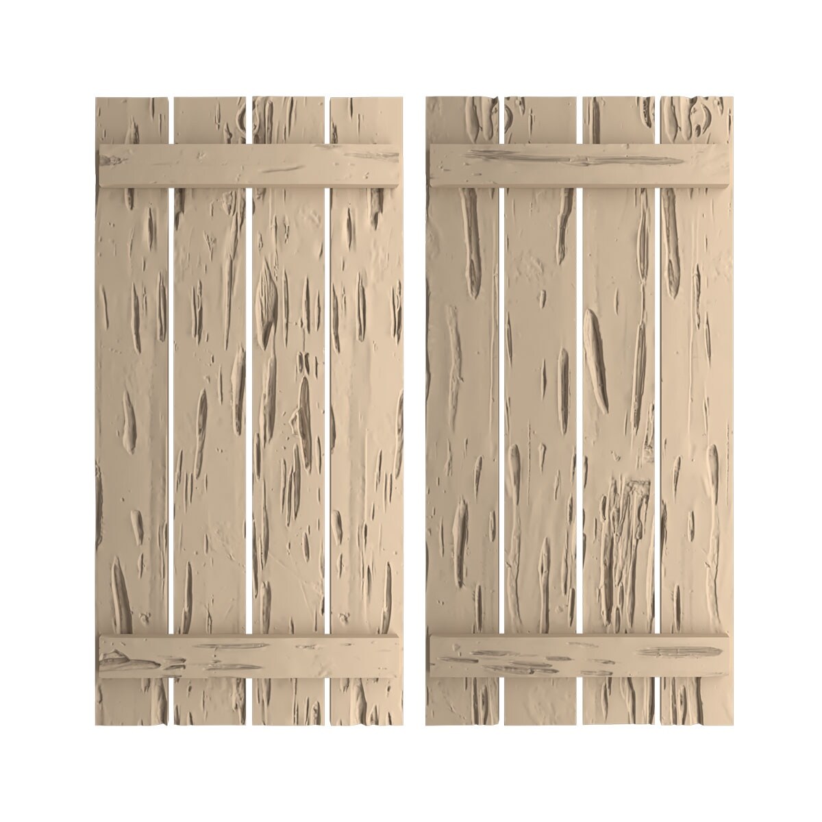 Rustic Four Board Joined Board-n-Batten Faux Wood Shutters (Per Pair), Primed Tan
