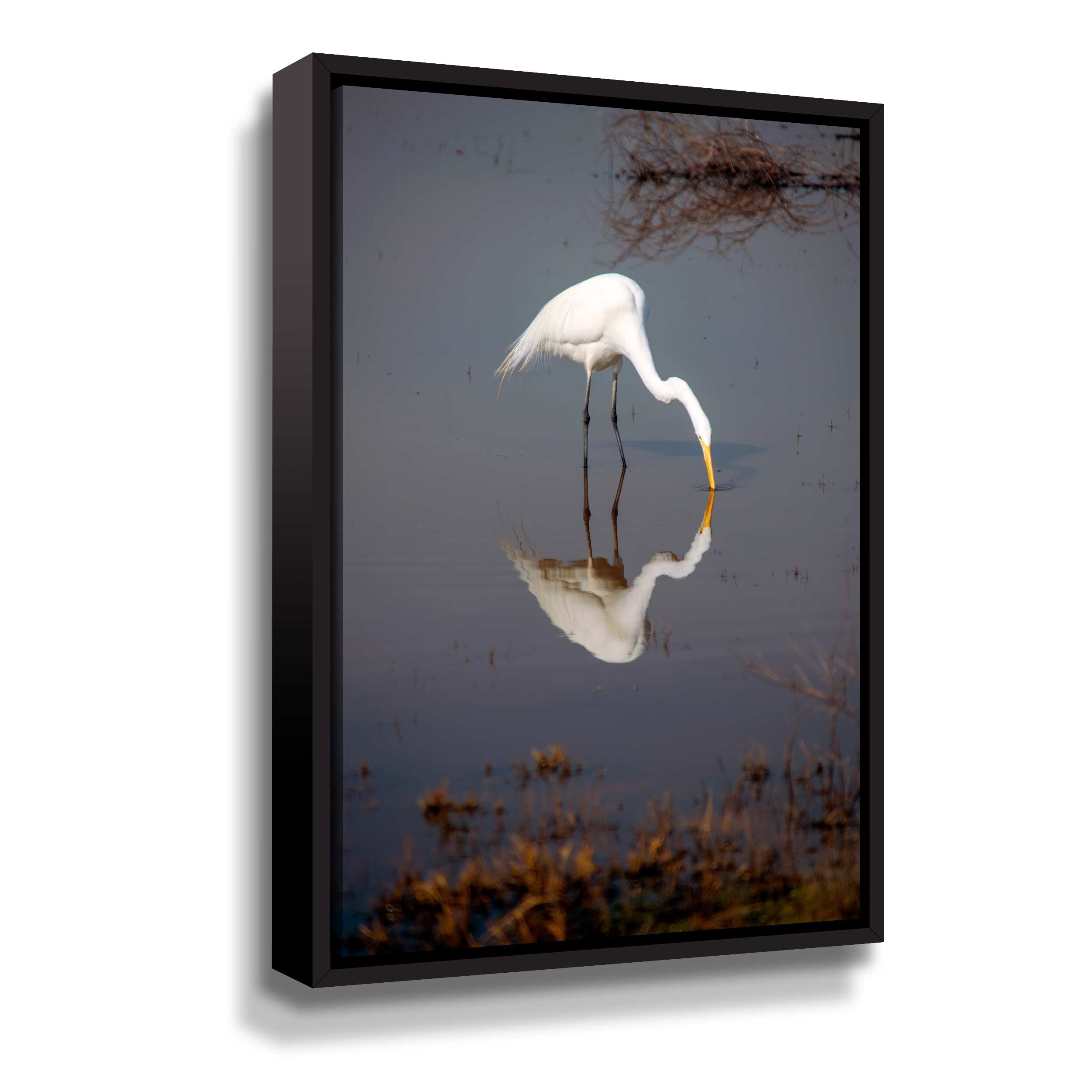 The Kiss White Egret by Frank Wilson Gallery Wrapped Floater-framed Canvas