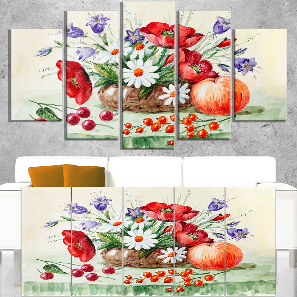 Designart "Still Life Fruit And Flowers Collection" Cabin & Lodge Framed Wall Art
