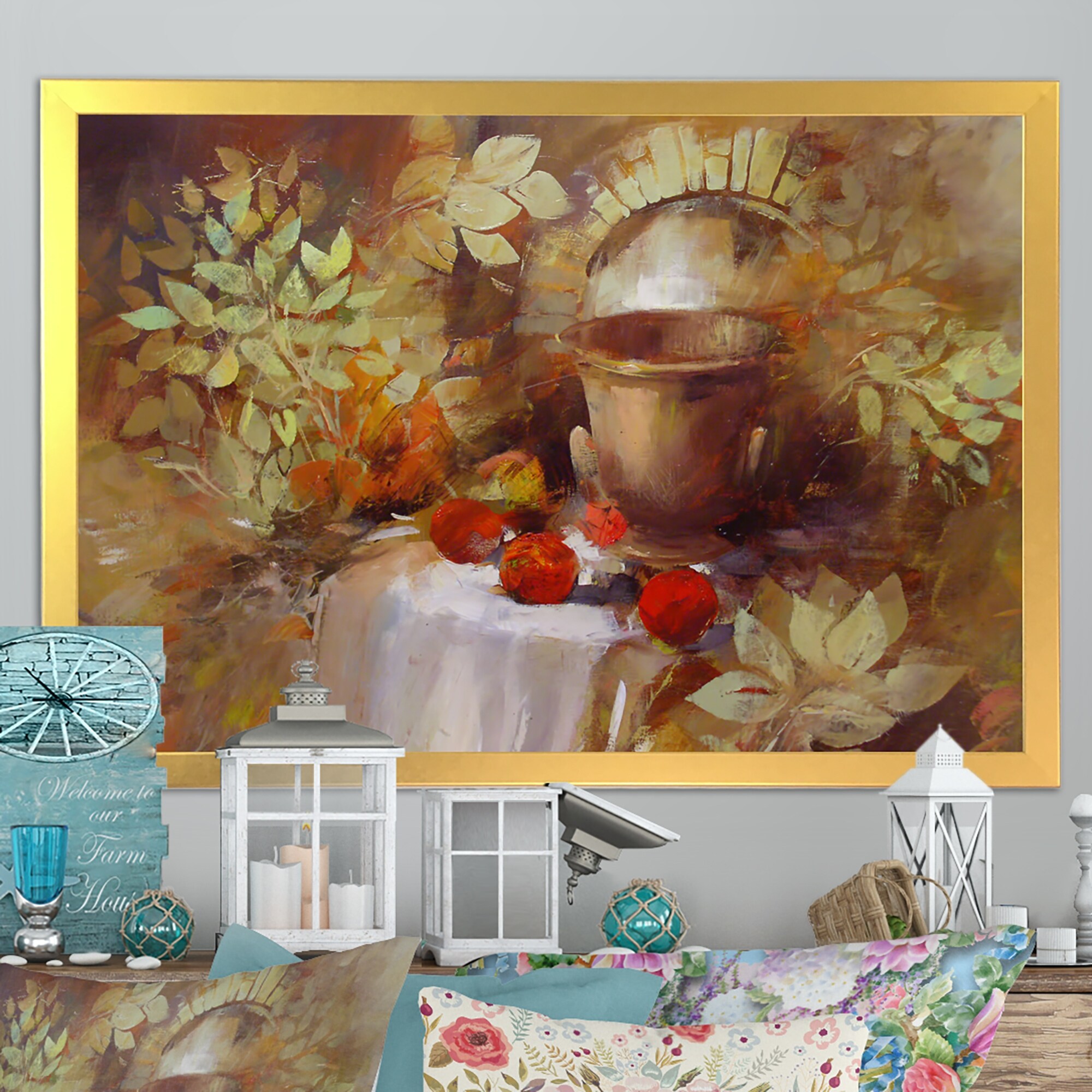 Designart "Still Life Farmhouse Flowers And Fruits II" Traditional Framed Wall Art