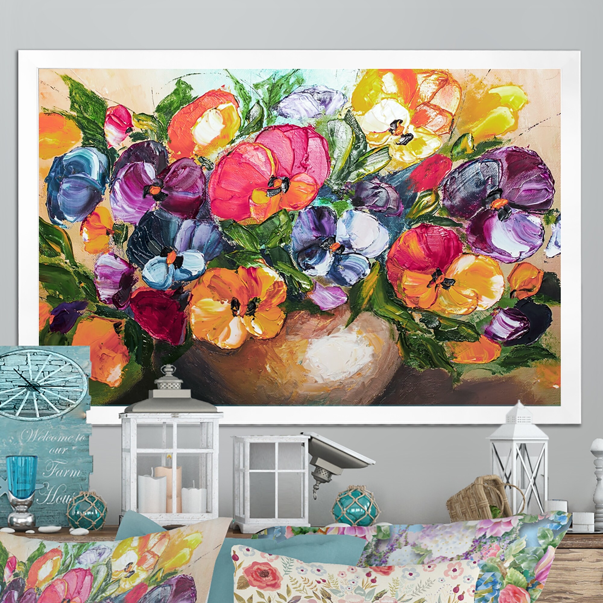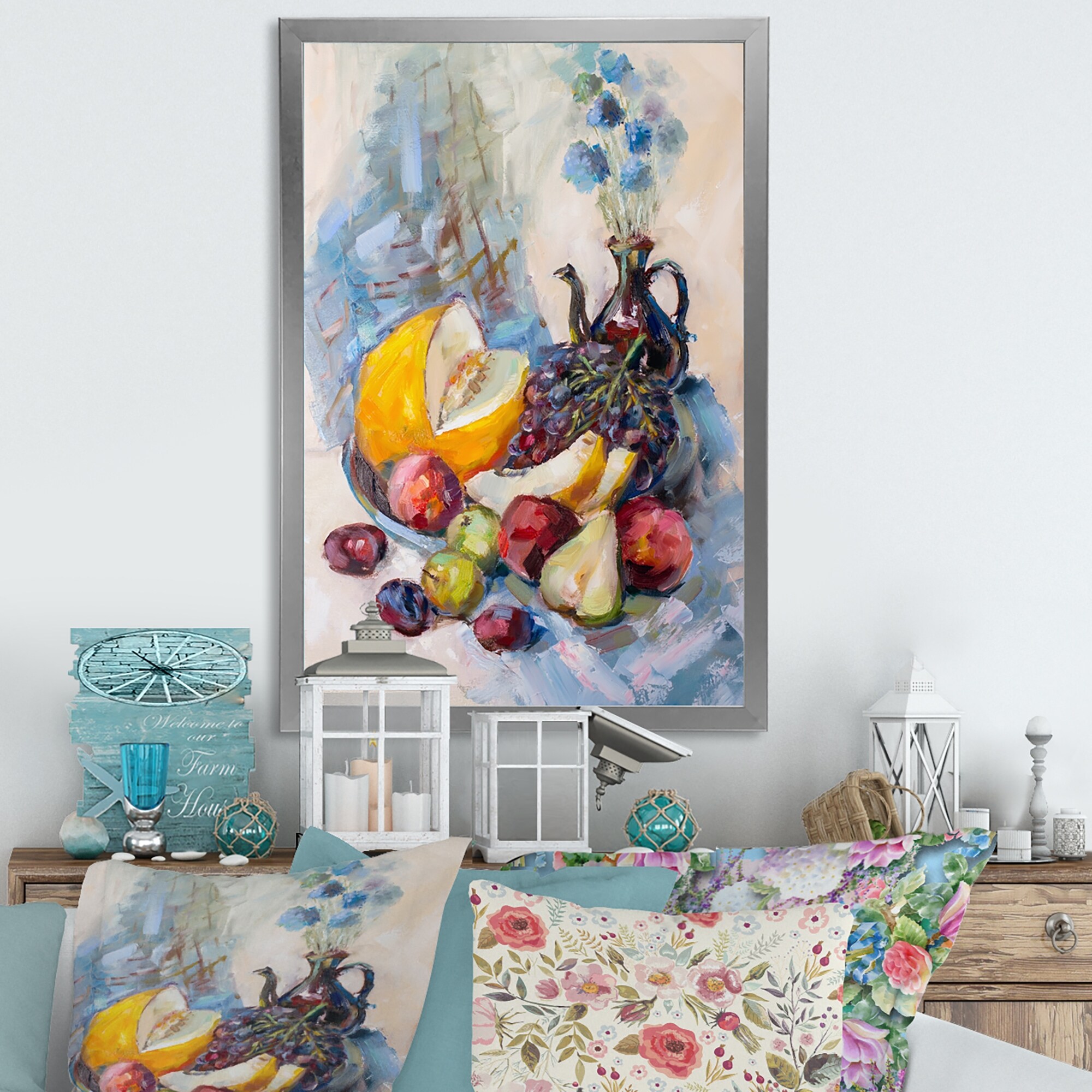 Designart "Flowers And Fruits Impressionism II" Farmhouse Framed Canvas Wall Decor