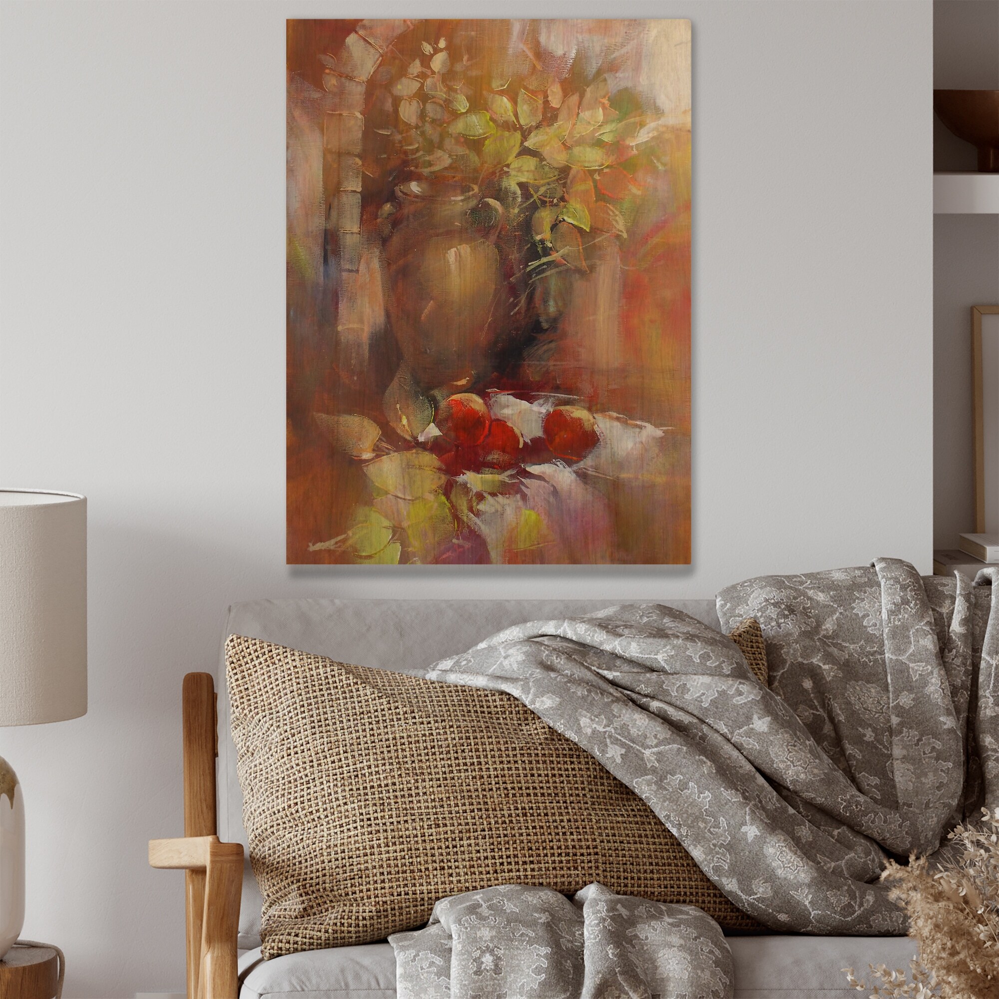 Designart 'Still Life Farmhouse Flowers And Fruits V' Traditional Wood Wall Art - Natural Pine Wood