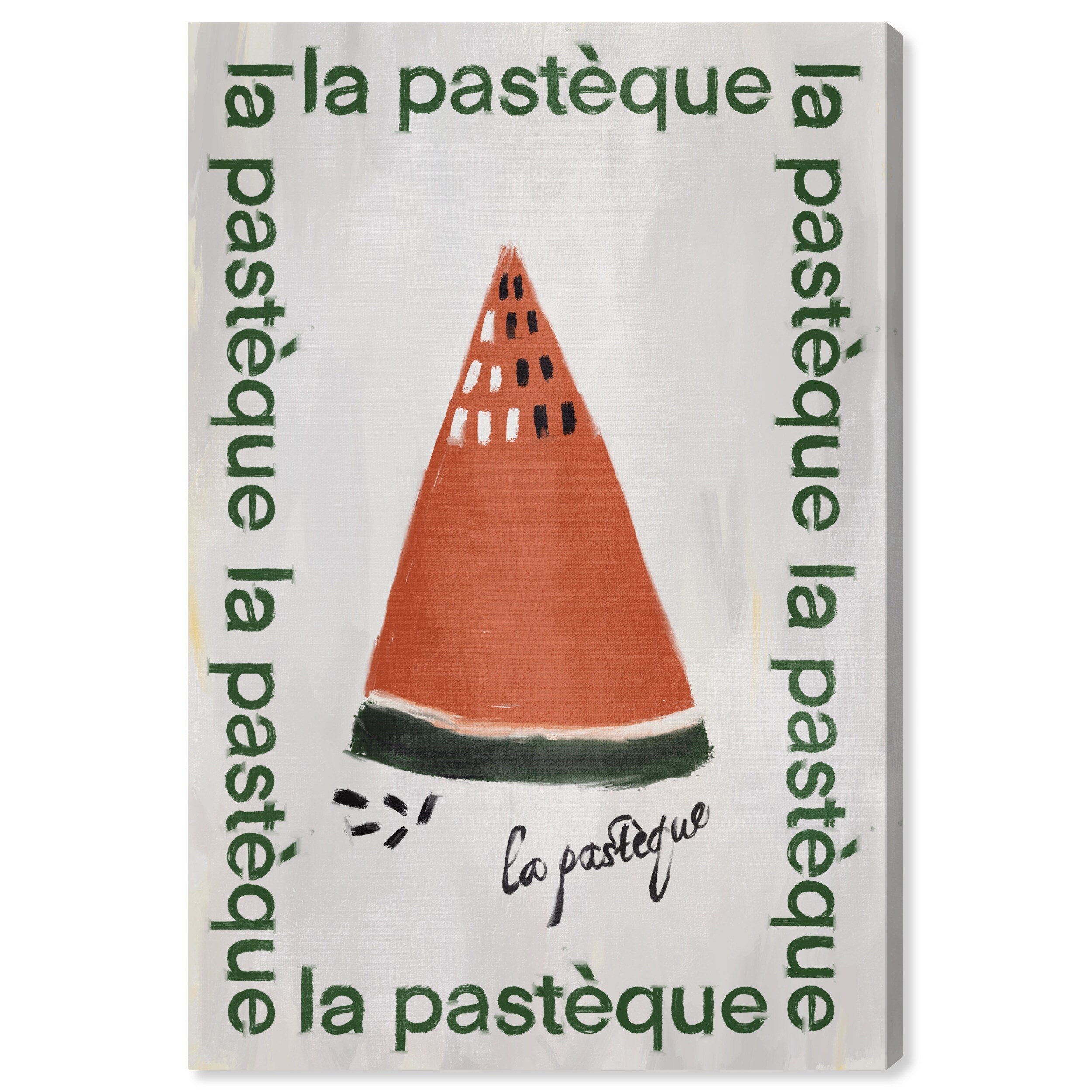 "La Pasteque", Geometric French Fruit Modern Red Canvas Wall Art Print for Kitchen