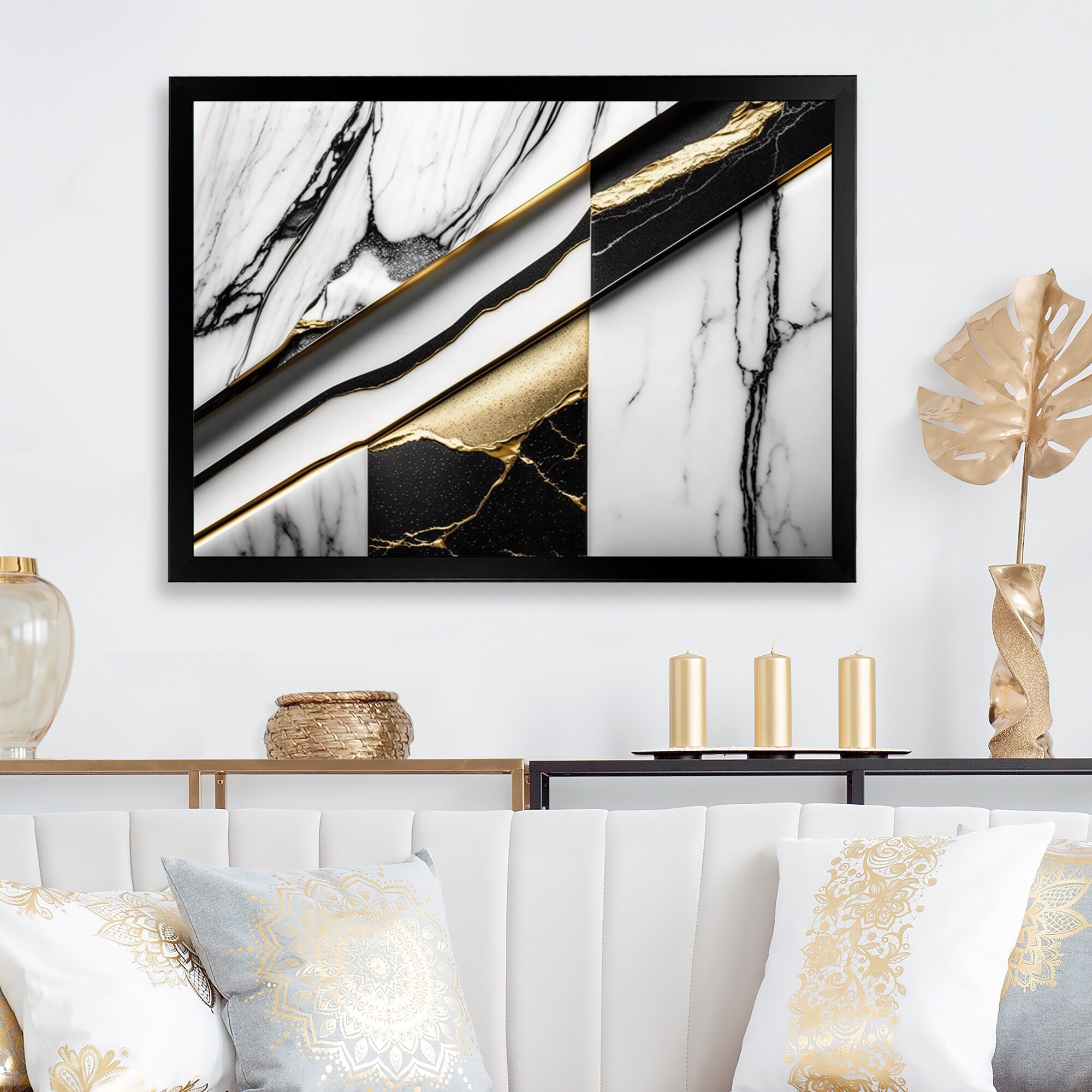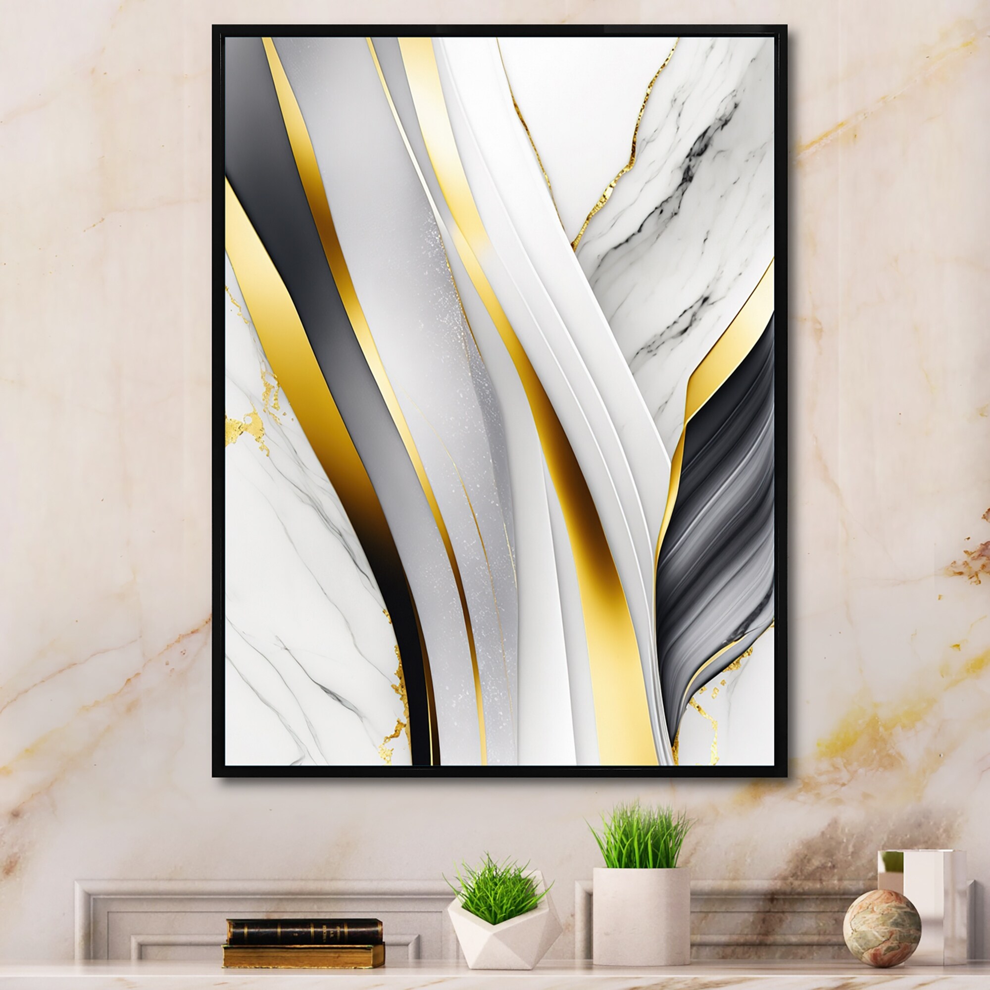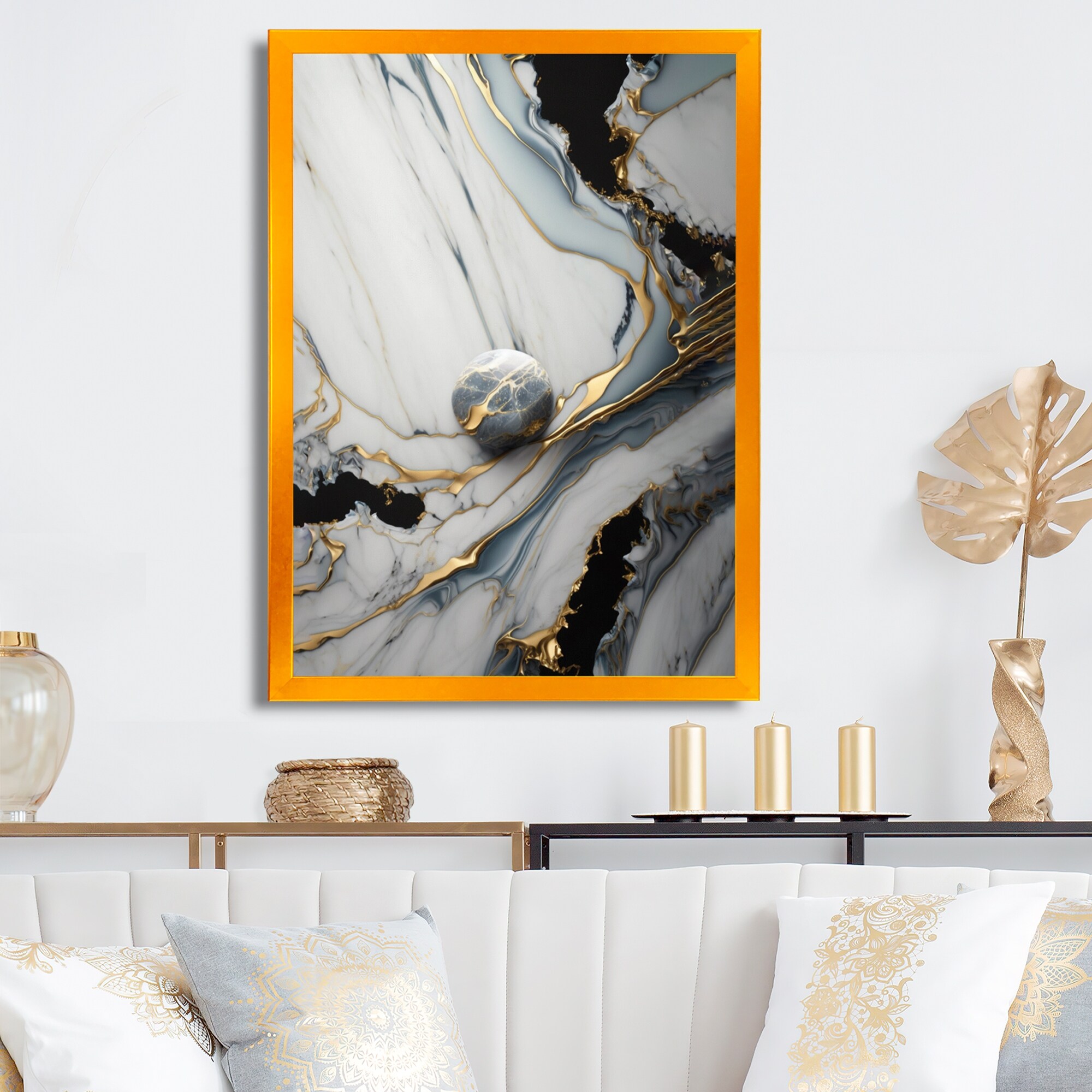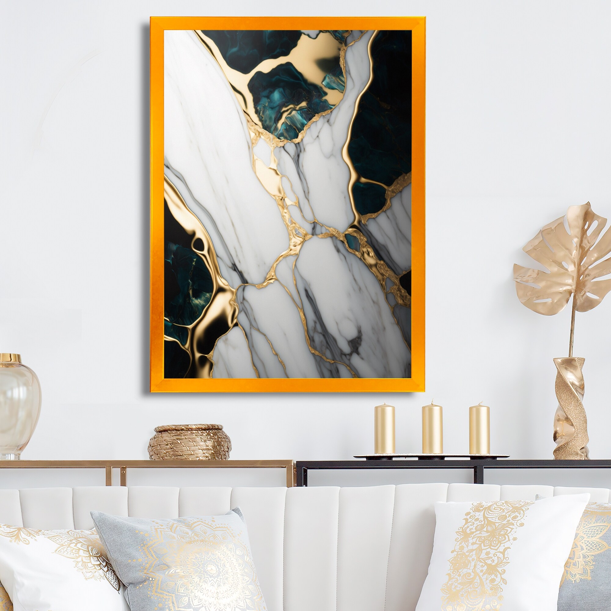 Designart "Abstract Geode Gold And White Marble III" Marble Abstract Framed Art Print