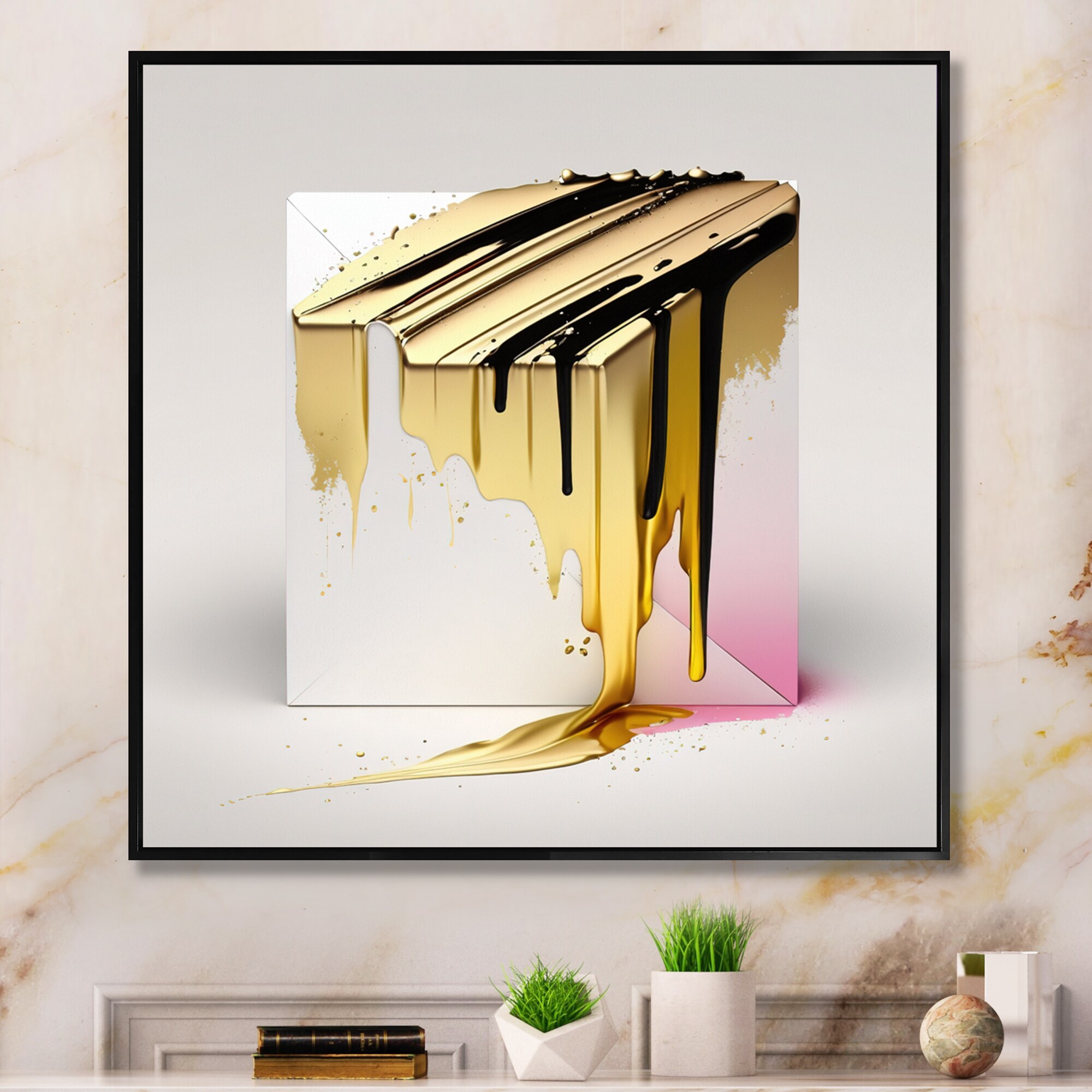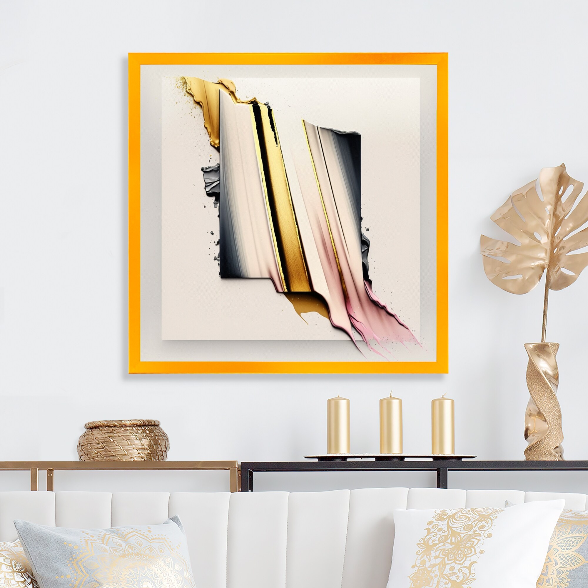 Designart "Abstract Geode Shapes Gold" Animals Framed Canvas Art Print