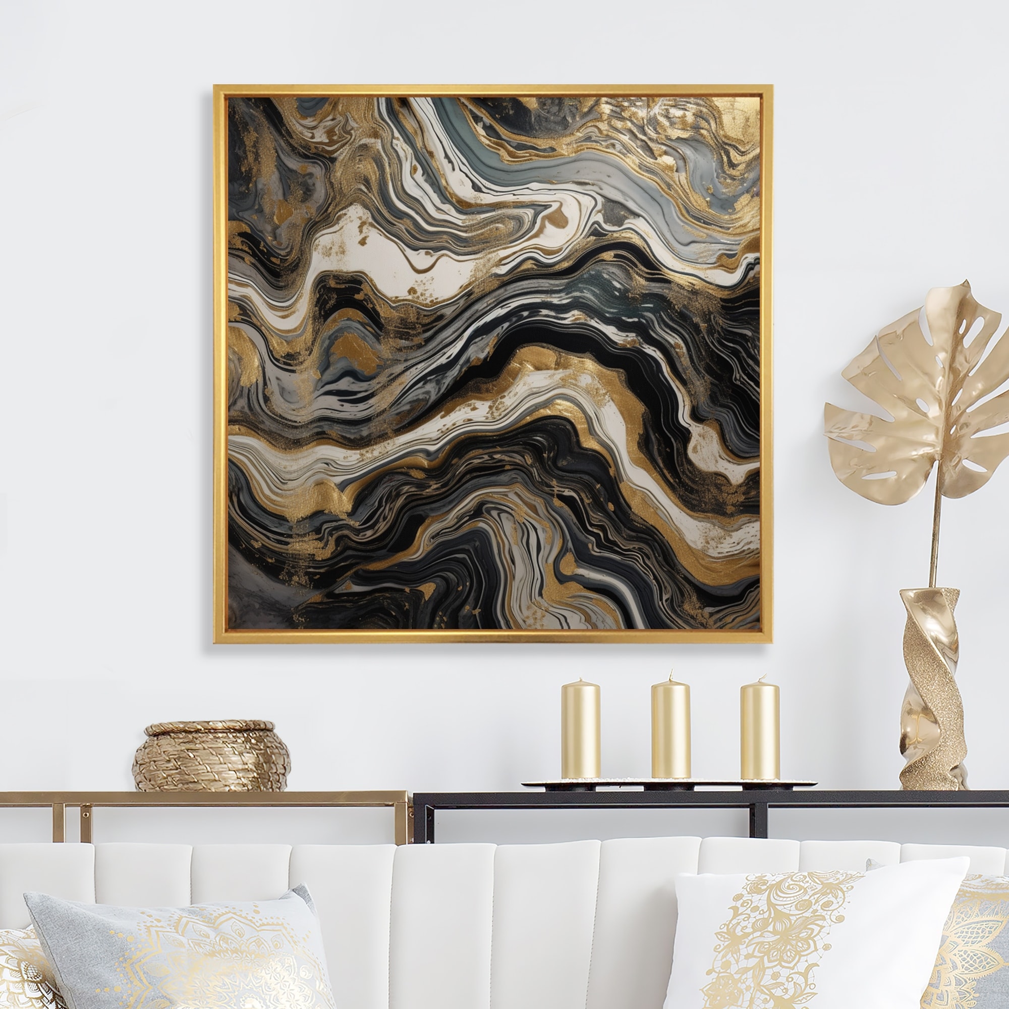 Designart "Abstract Geode Black I" Marble Abstract Framed Canvas Art Print