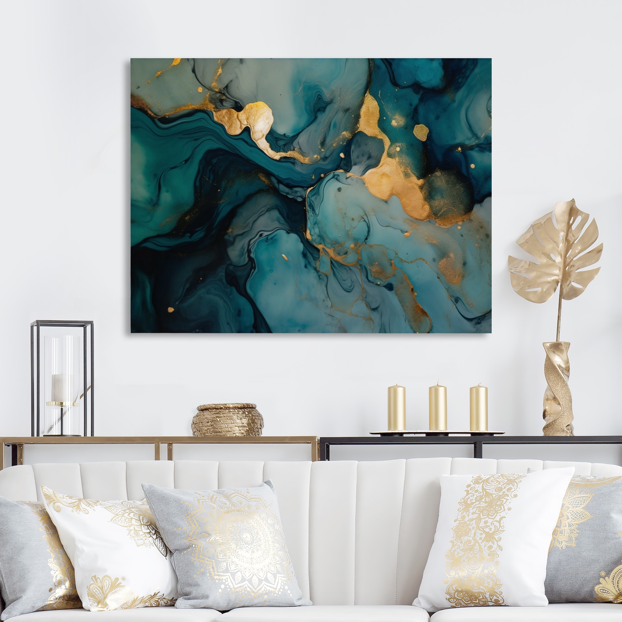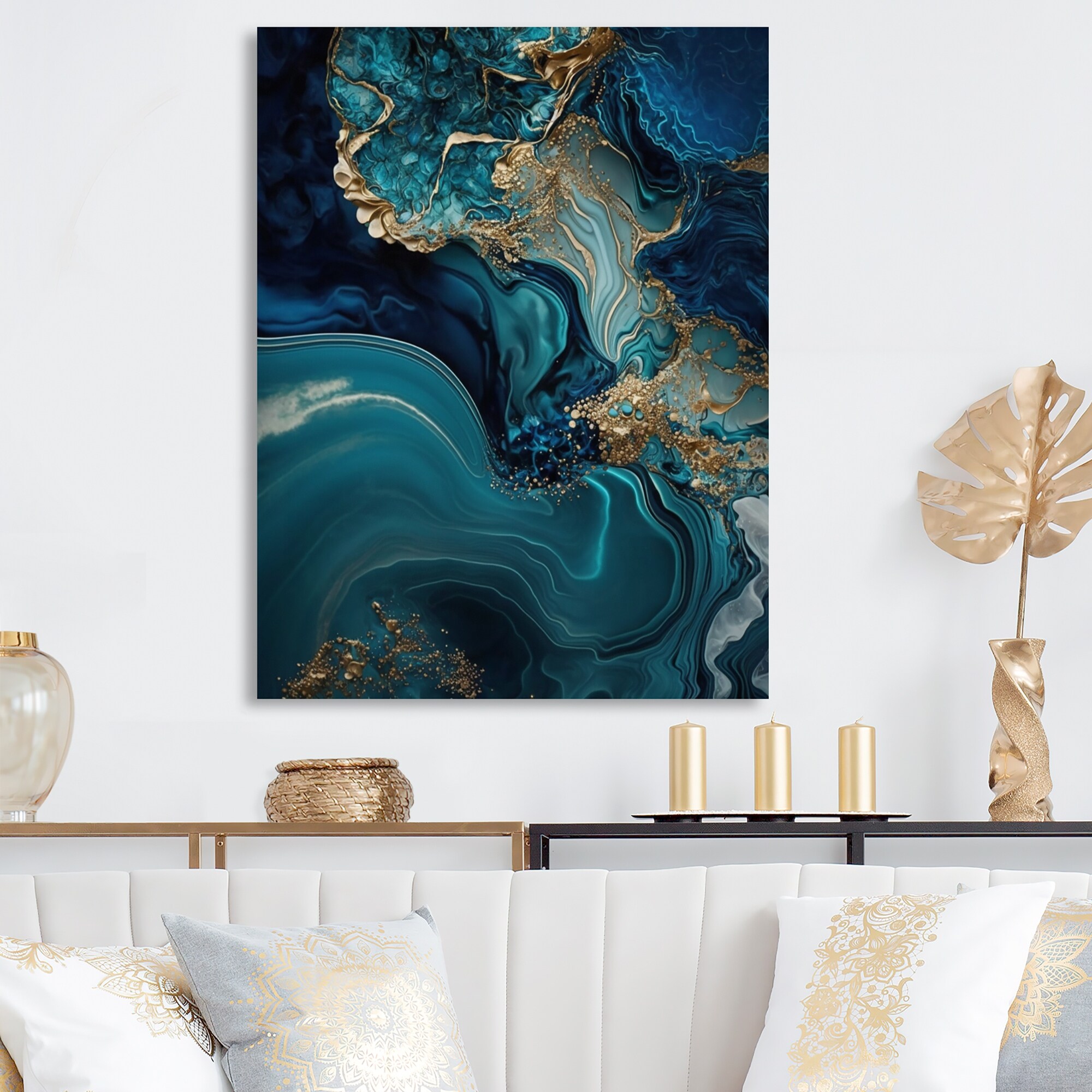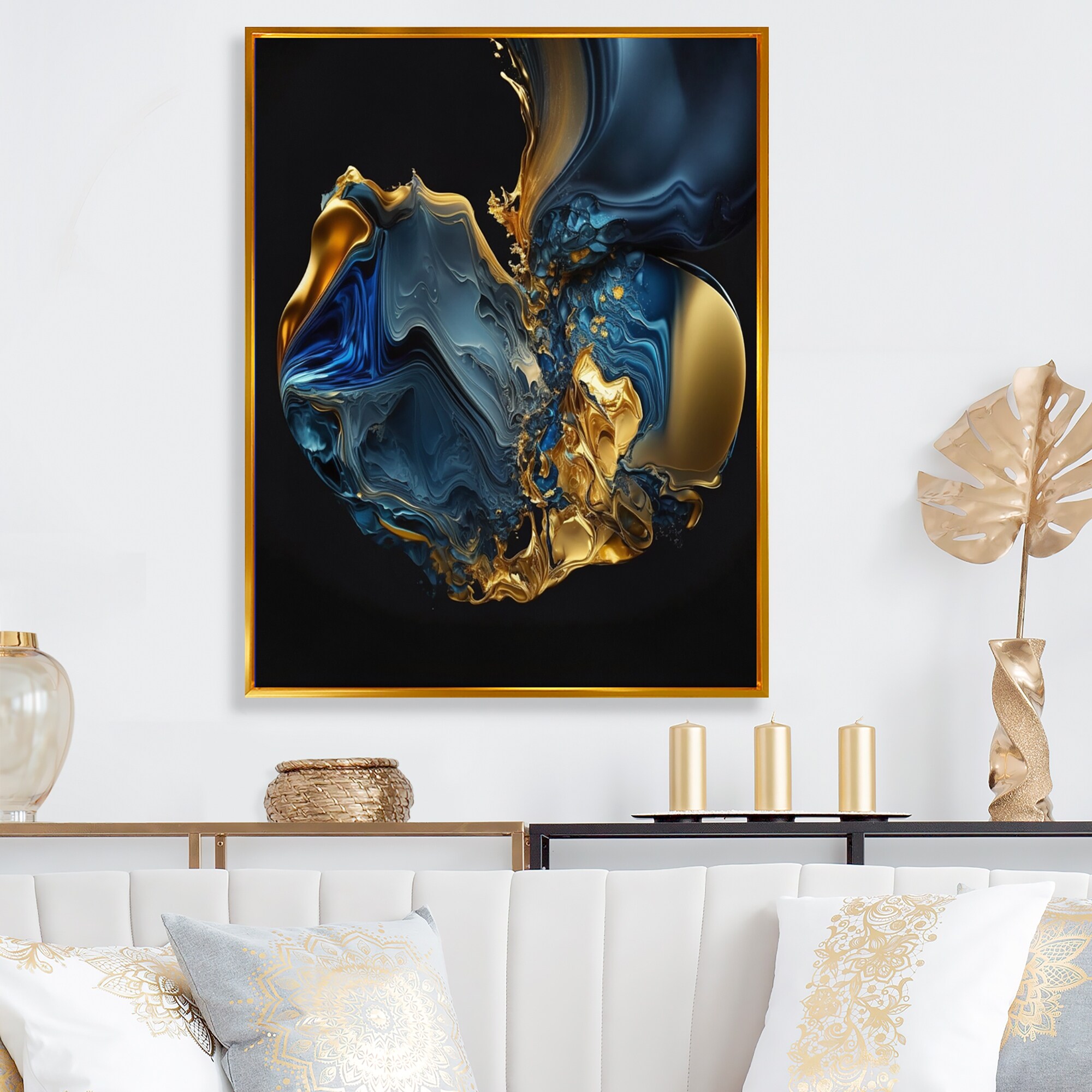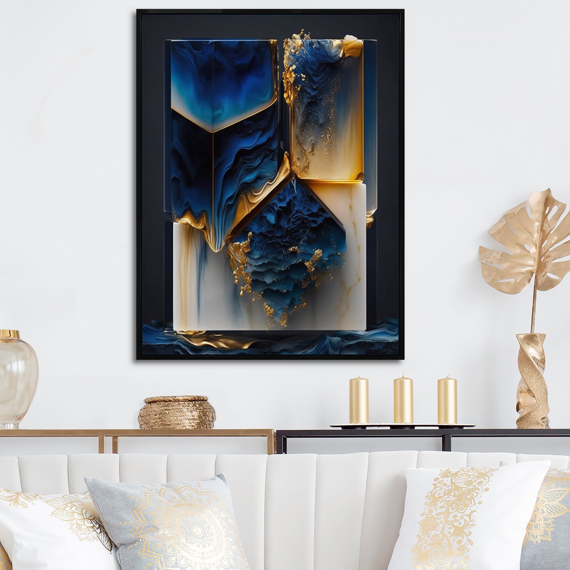Designart "Abstract Marble Geode Blue And Gold" Liquid ink Framed Canvas Art Print