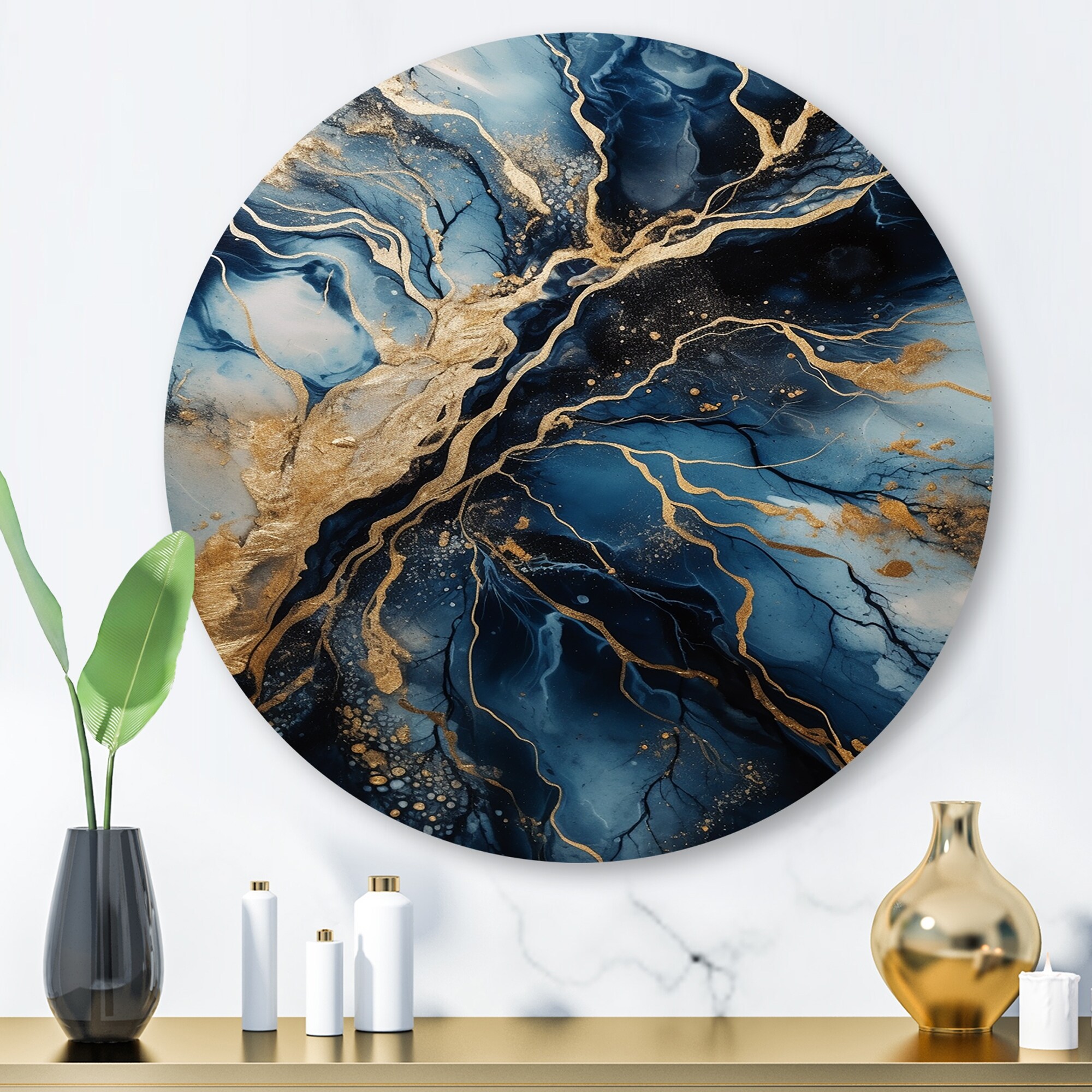 Designart "Exploring The Depths of Blue Geode IV" Abstract Marble Metal Round Wall Art
