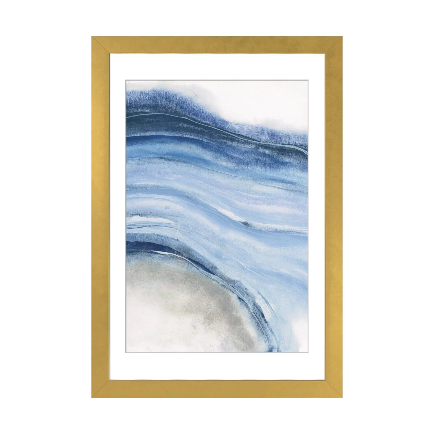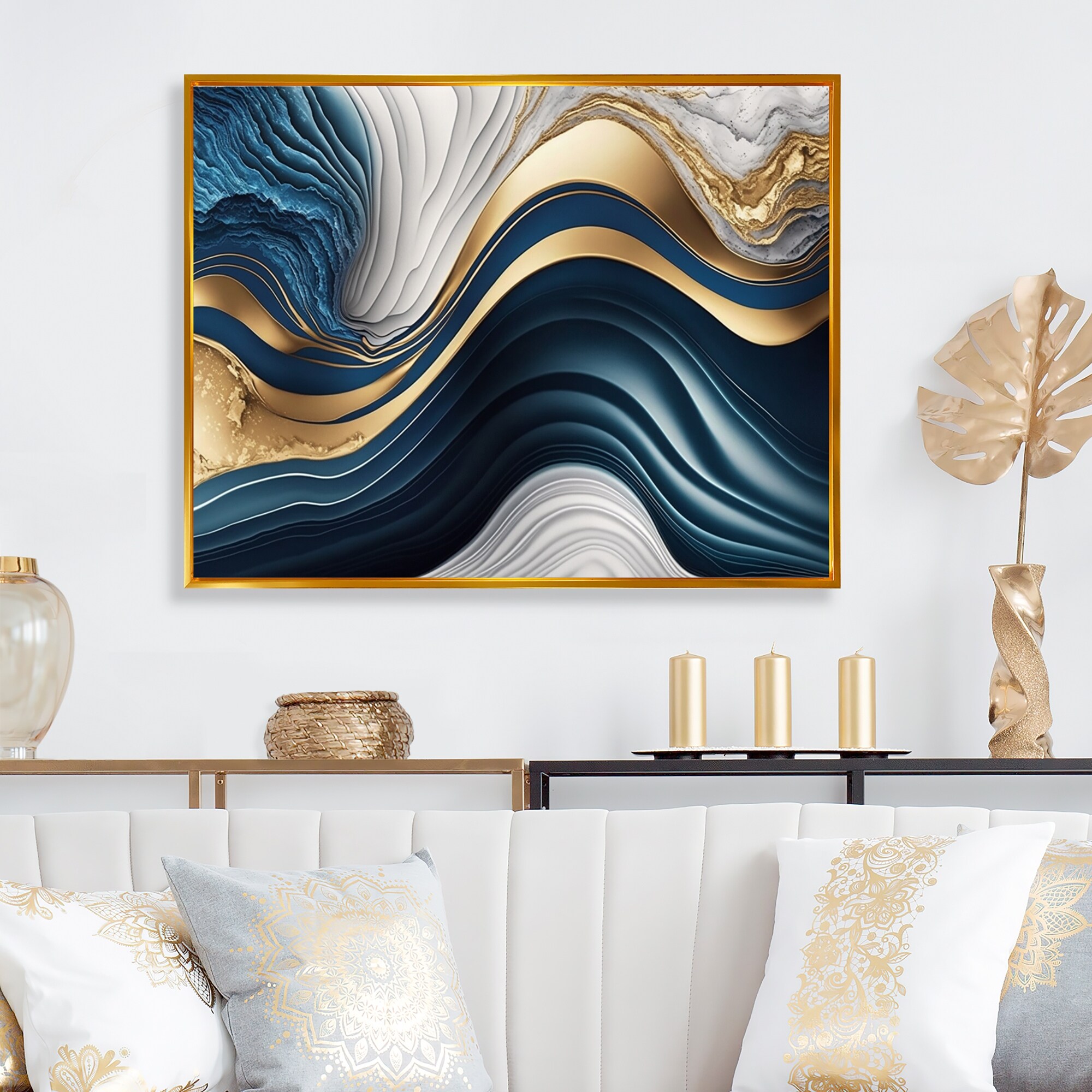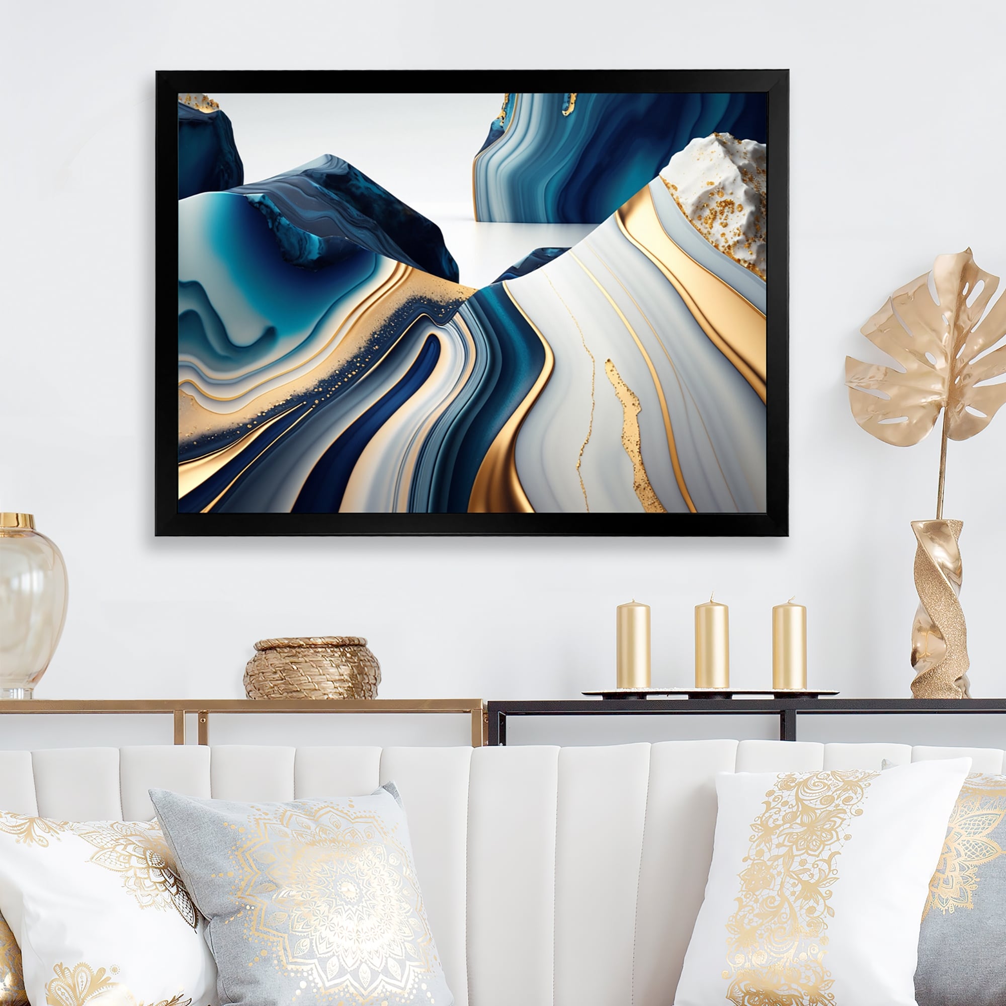 Designart "Abstract Geode Waves Blue And Gold I" Abstract Framed Art Print