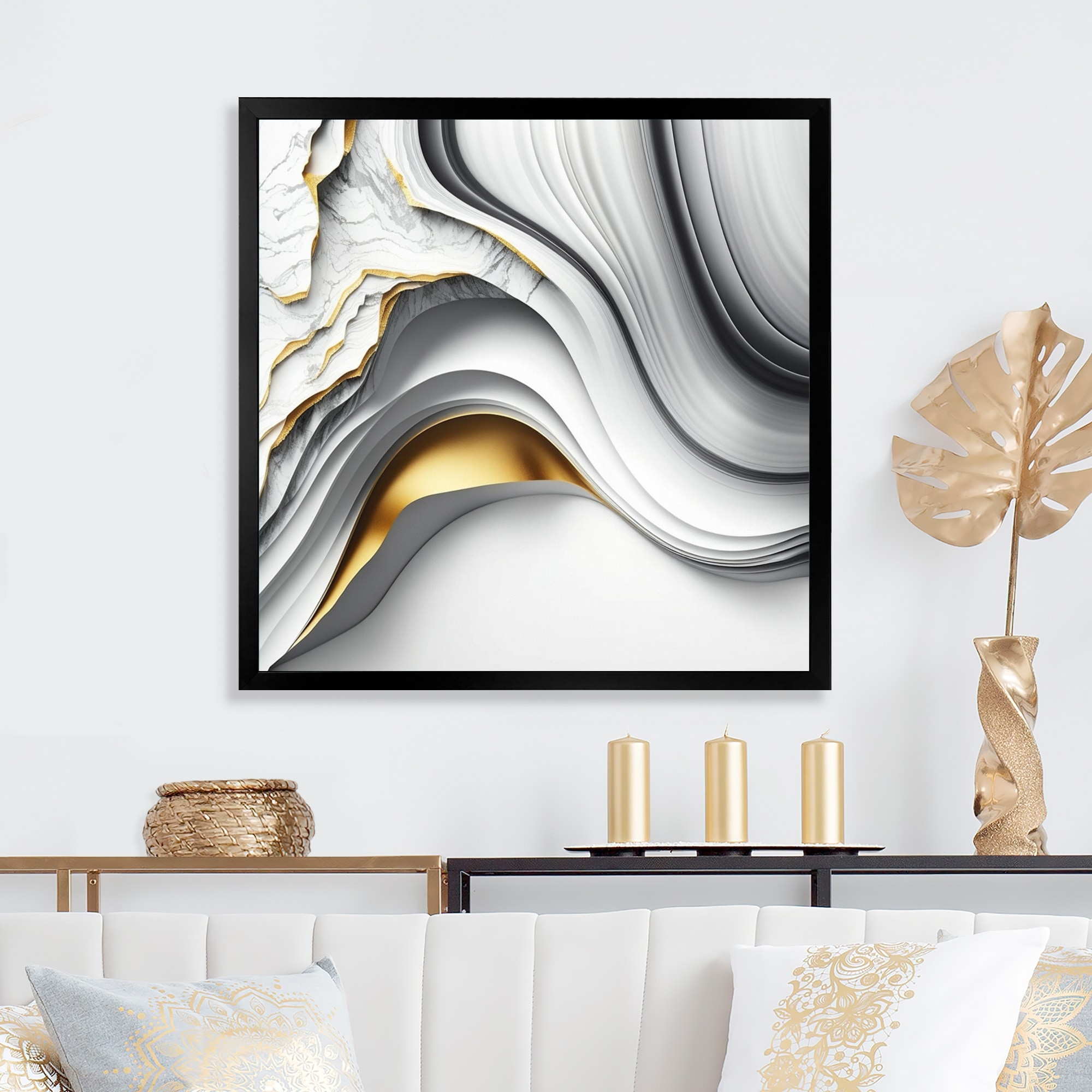 Designart "Abstract Geode Waves Grey I" Abstract Framed Art Print