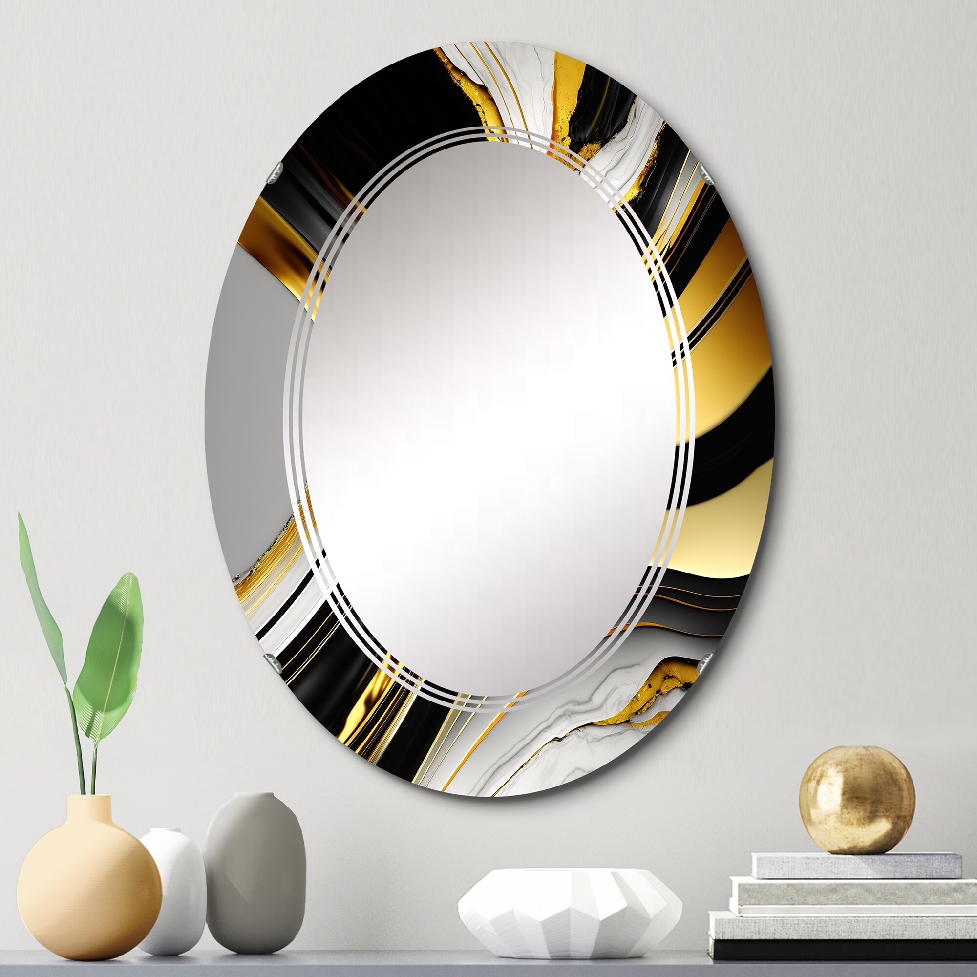 Designart 'Abstract Geode Marble Waves Gold II' Printed Modern Waves Wall Mirror