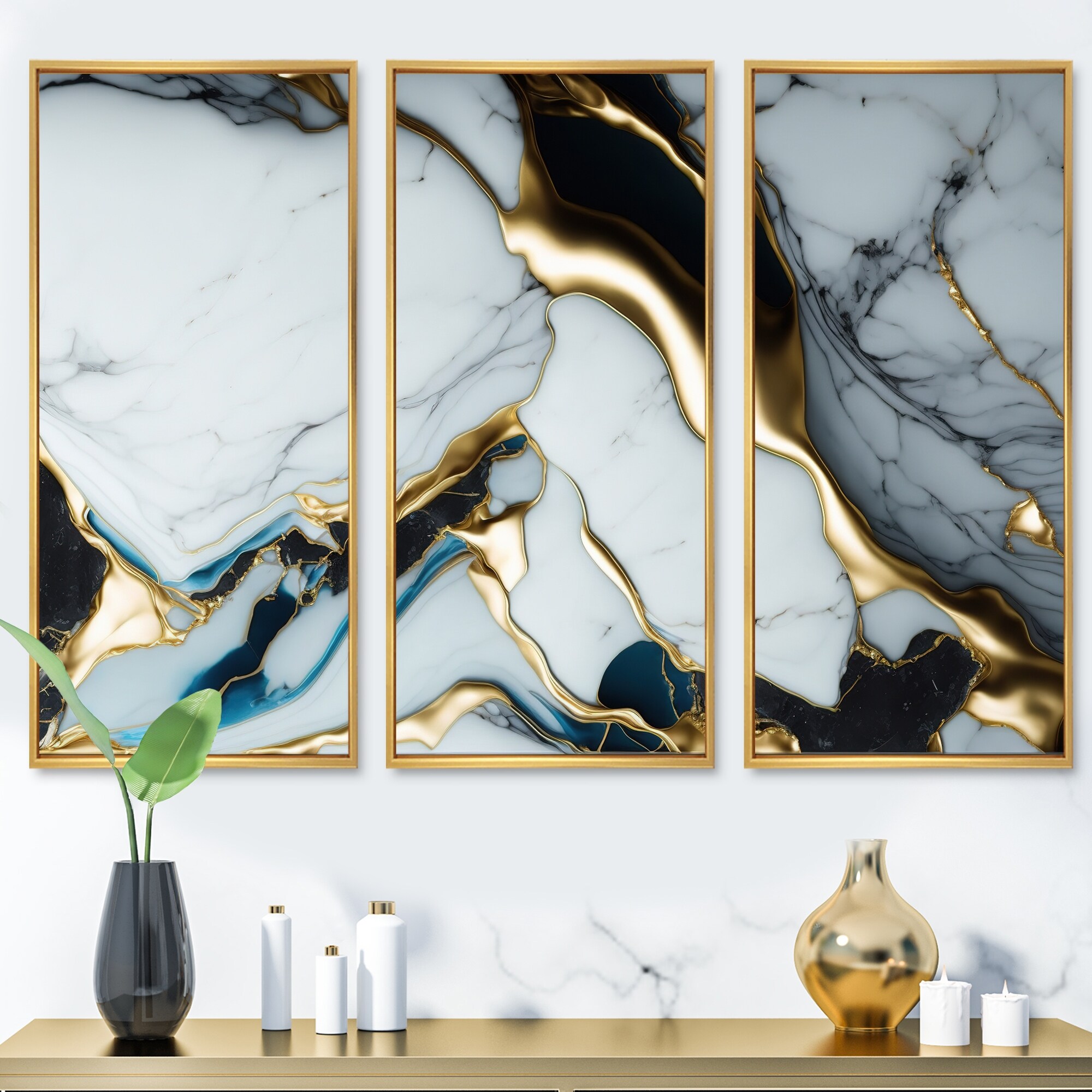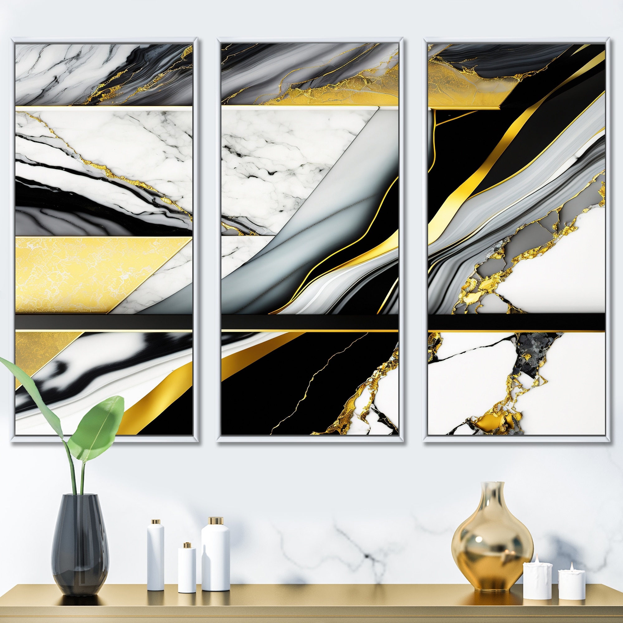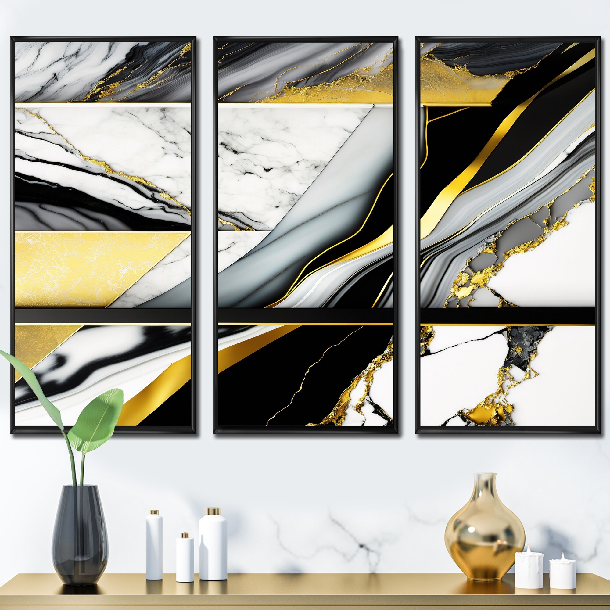 Designart "Abstract Geode Gold And White Marble II" Abstract Marble Framed Canvas Art Print - 3 Panels