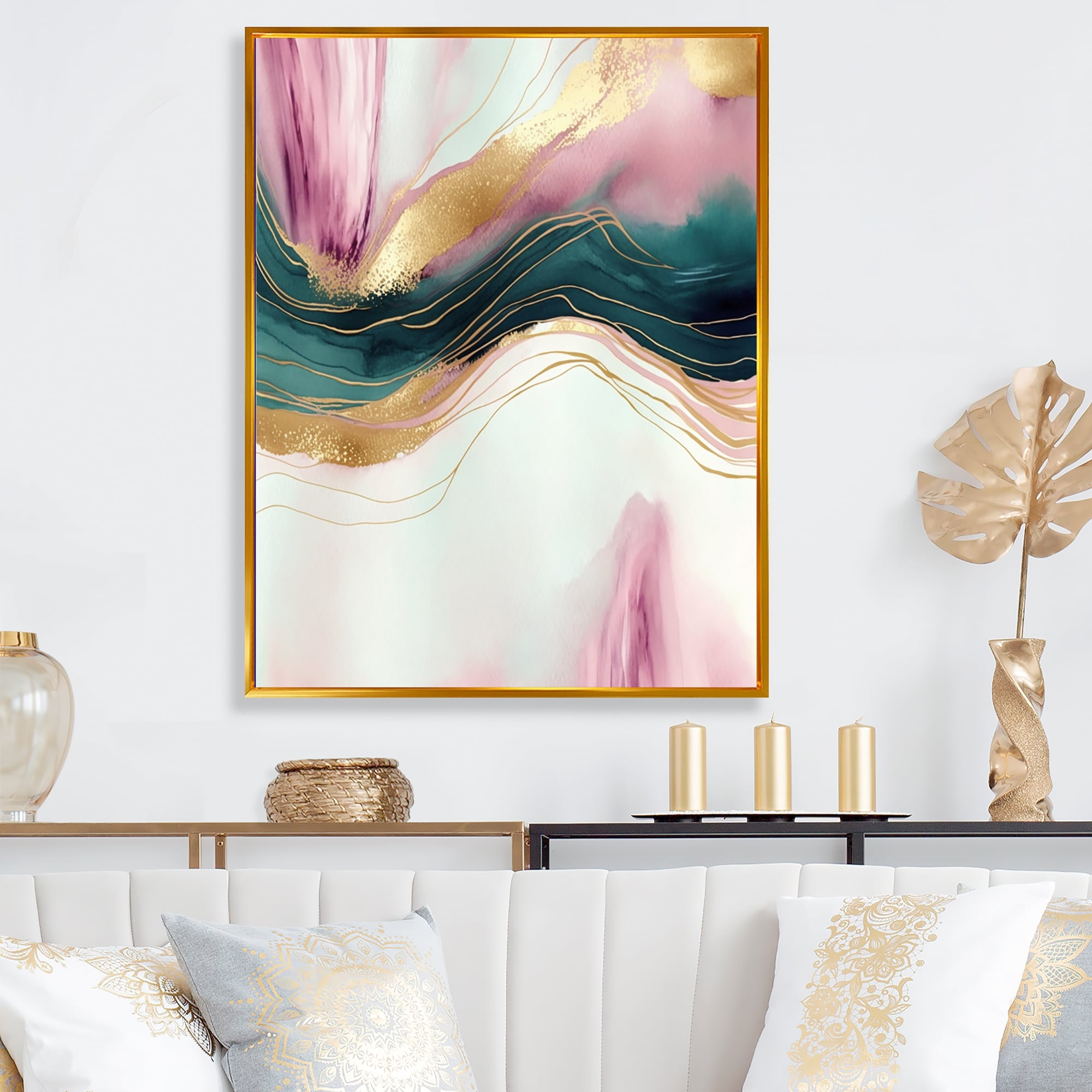 Designart "Abstract Geode Pink And Green Marble III" Marble Abstract Framed Canvas Art Print