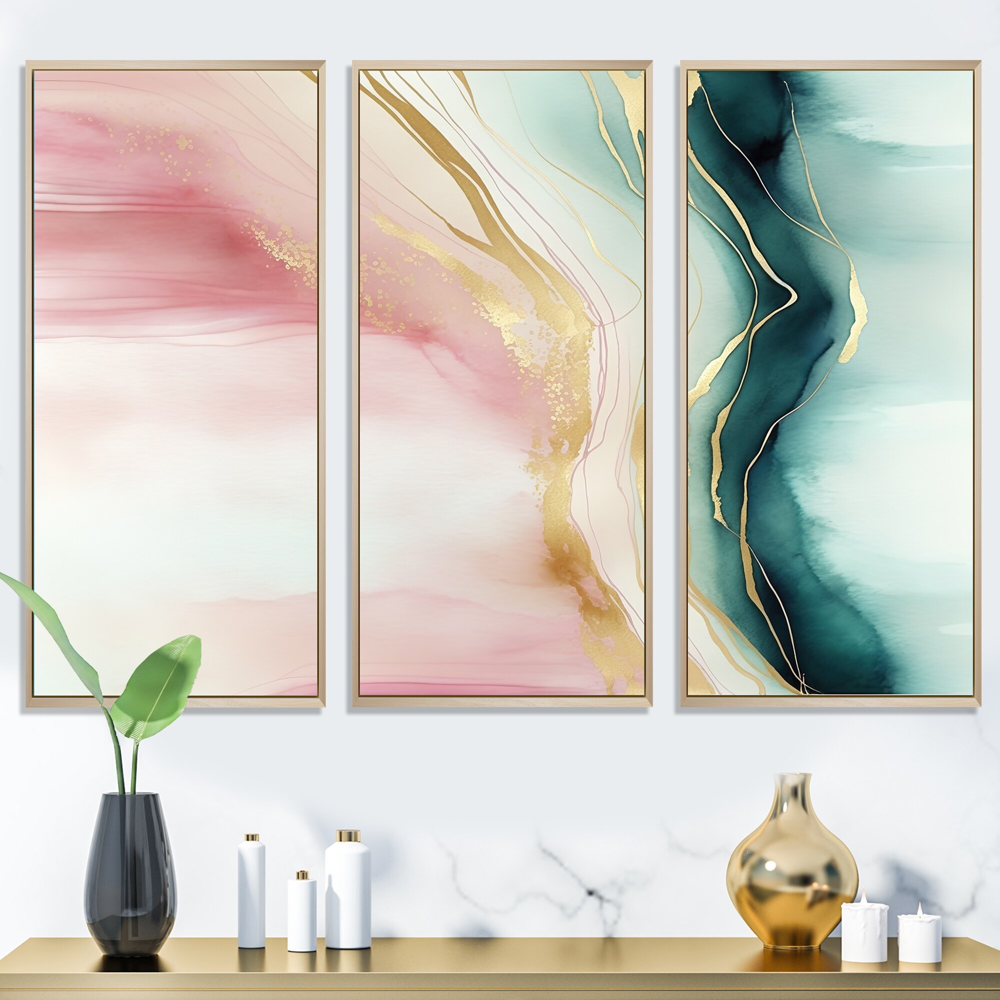 Designart "Abstract Geode Pink And Green Marble II" Abstract Marble Framed Canvas Art Print - 3 Panels