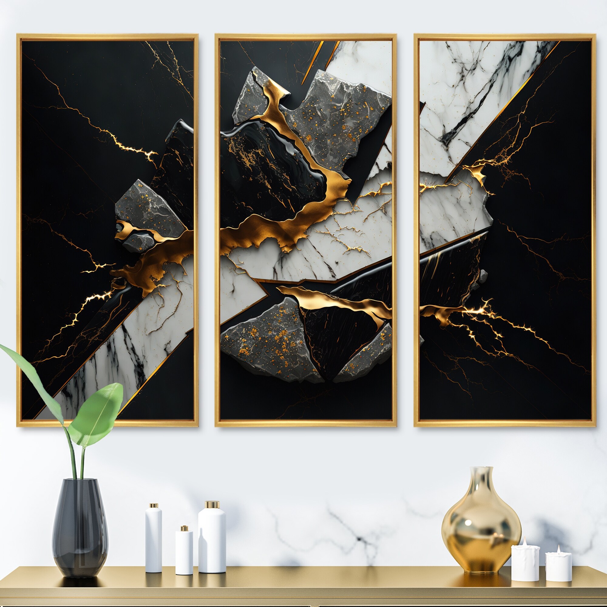 Designart "Abstract Geode Black III" Abstract Marble Framed Canvas Art Print - 3 Panels