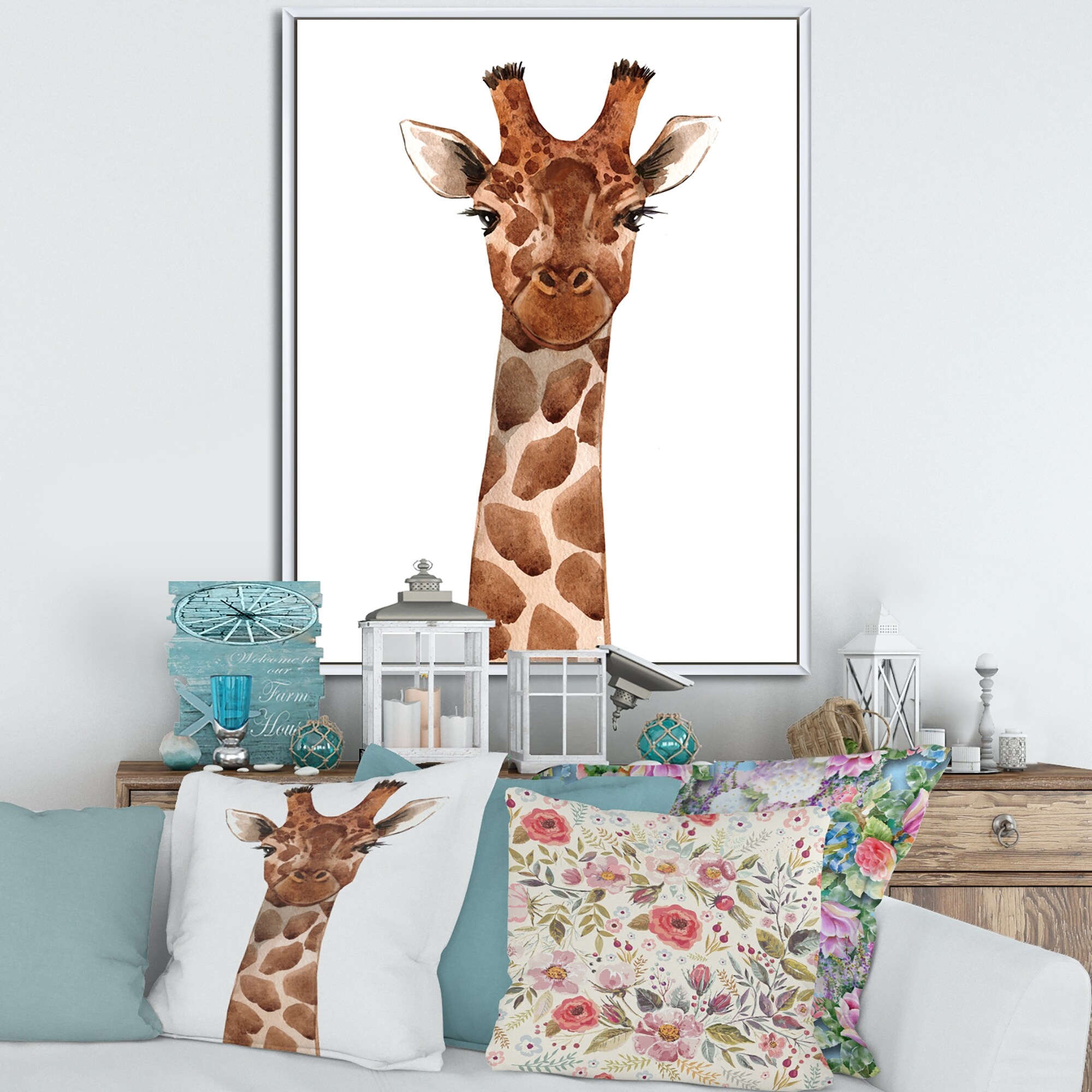 Designart "Portrait of a Giraffe VIII" Farmhouse Framed Art Print