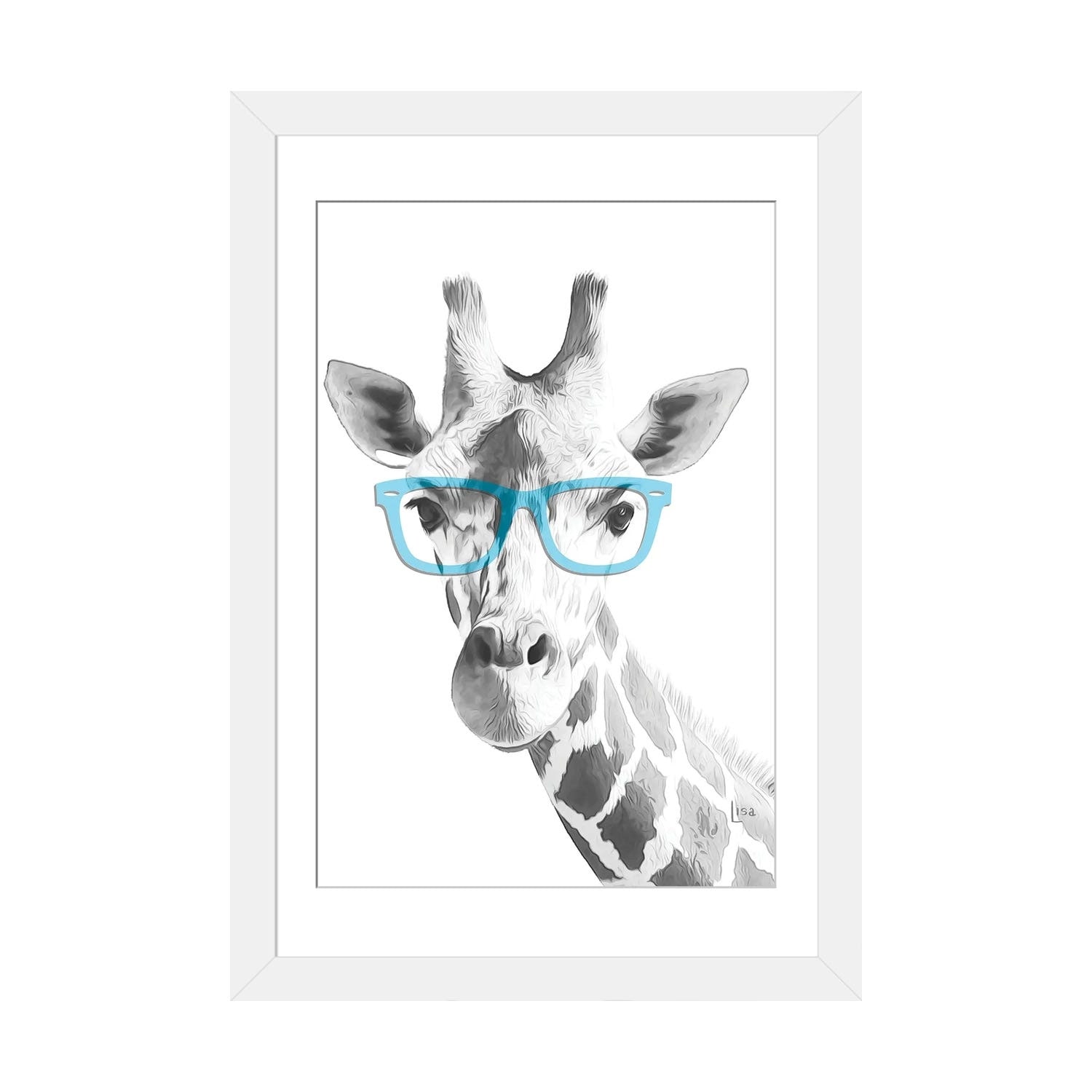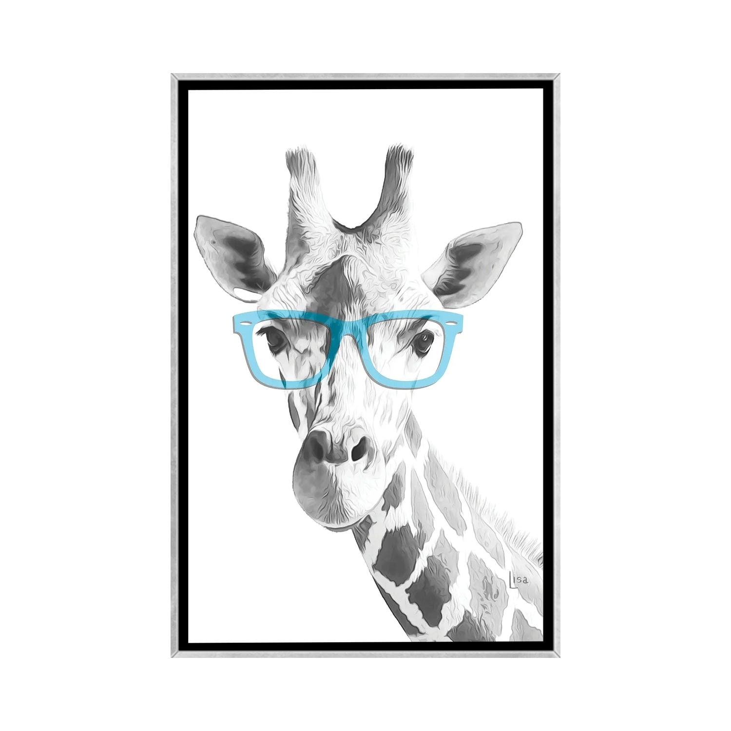 iCanvas "Giraffe With Blue Glasses" by Printable Lisa's Pets Framed