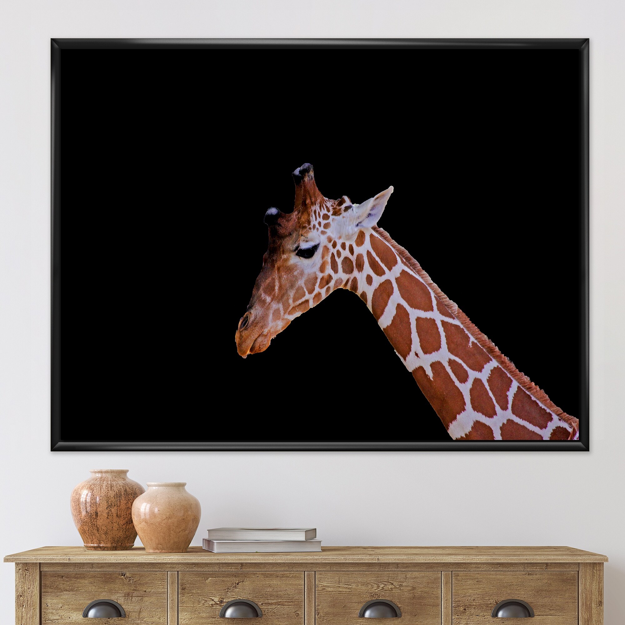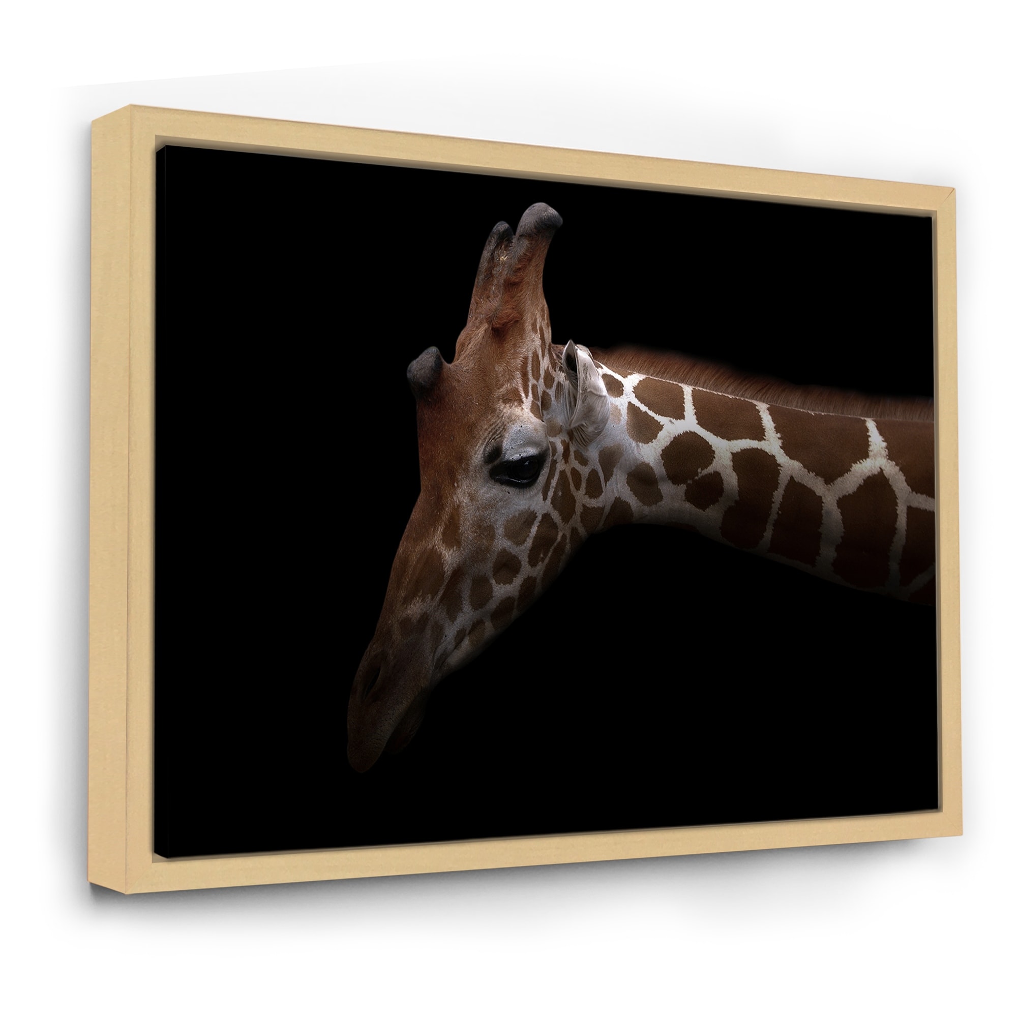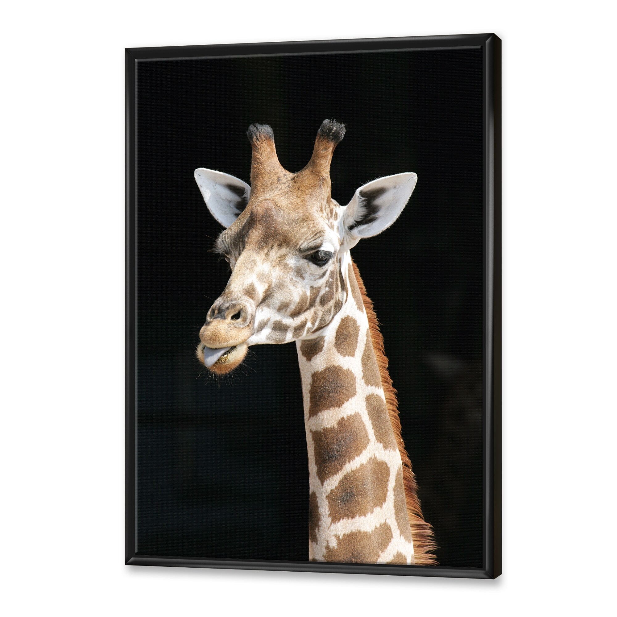 Designart "Close Up Giraffe on Black" Traditional Framed Art Print