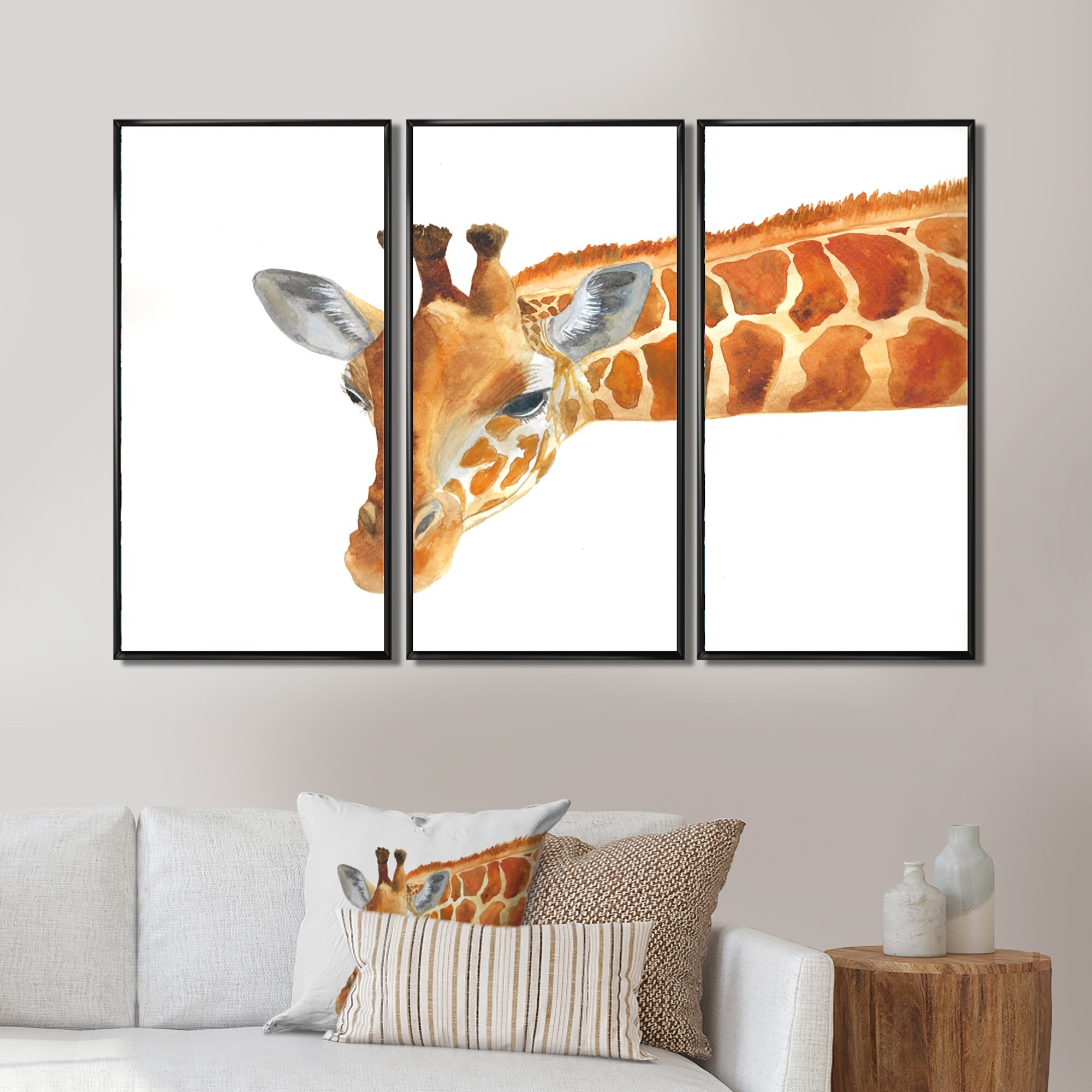 Designart "Portrait of a Giraffe IV" Farmhouse Framed Artwork Set of 3 - 4 Colors of Frames